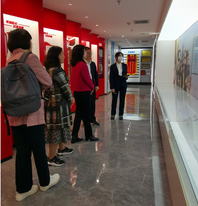 鞠敬一行参观了中建八局西南公司企业文化与党建展览馆,了解企业愿景、历史沿革、品牌业务、党建工作相关成果。