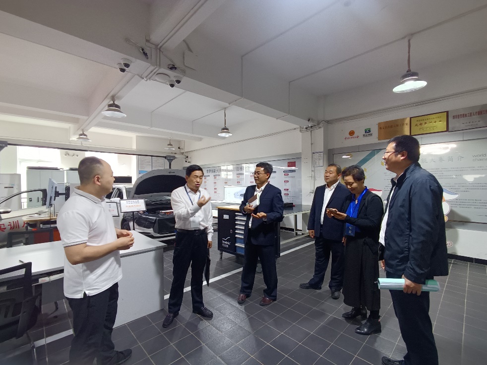 再次是实地考察。专家组实地考察我院宝马、大众、丰田等校企合作培训中心、杨文浩省级大师工作室及世界技能大赛汽车技术项目中国集训基地。