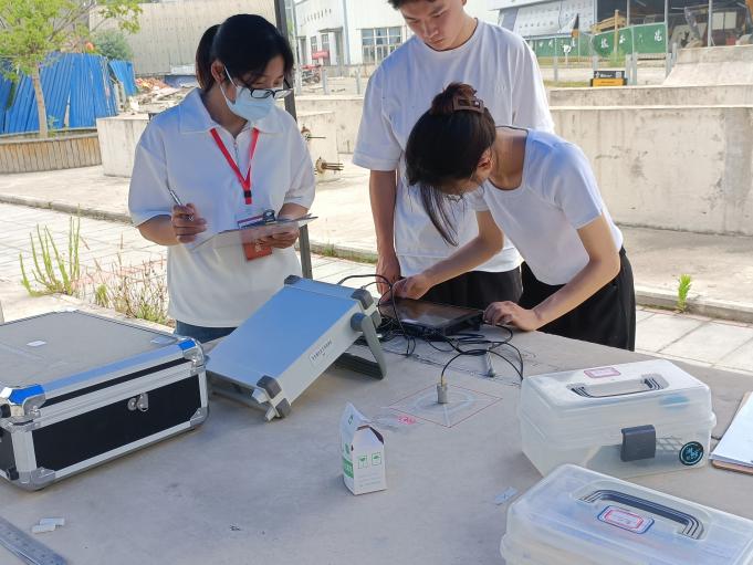 本次认证考核内容分理论考核和技能实操考核两个部分,全面检验路桥相关专业学生的理论素养和实操能力。本次技能实操考核项目包含混凝土厚度(冲击回波法)、混凝土内部缺陷(冲击回波法)、混凝土裂缝深度(相位反转法)、钢筋分布及保护层厚度(电磁感应法)、路基回弹模量(落球法)、预应力无损检测(频率法)、立柱长度及埋深检测(冲击弹性波法)、锚杆长度及灌浆密实度检测(冲击弹性波法),共8个任务。