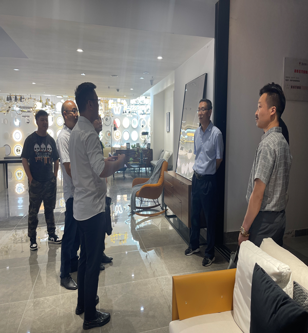 在成都菡萏怡景装饰有限公司总经理李宗波、人力资源总监苍月明等的的陪同下,权全一行参观了公司的展厅,看望了在公司工作的学生。