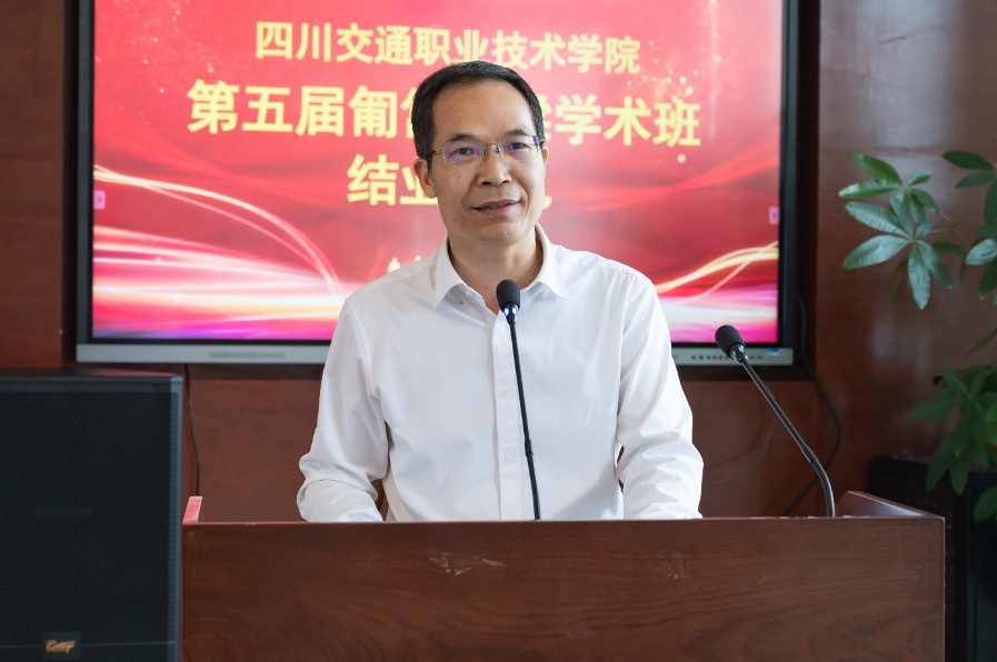 近日,四川交通职业技术学院第五届匍匐桥梁学术班(简称匍匐班)结业典礼在明德楼1301会议室隆重举行,学院党委书记冯书明、学院党委副书记、院长蒋永林、匍匐班领办人牟廷敏、相关部门负责人、道桥系班子及教师代表、牟廷敏大师工作室成员,第五届、第六届匍匐班同学共同见证了本次结业典礼。