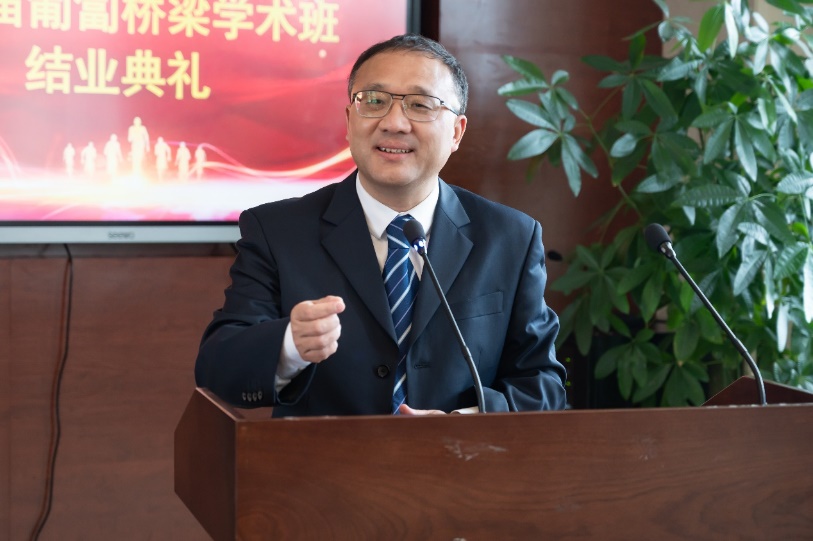 蒋永林对同学们在匍匐桥梁学术班三年的表现给予了认可,同时给予同学们美好的祝愿。他希望同学们在以后的生活中,独立做自己,心怀社会责任感,积极为行业做贡献,用积极的态度面对未来的挑战。