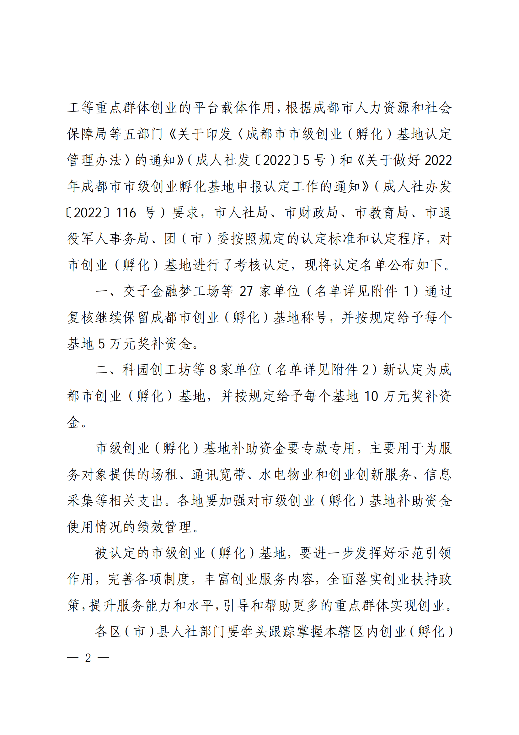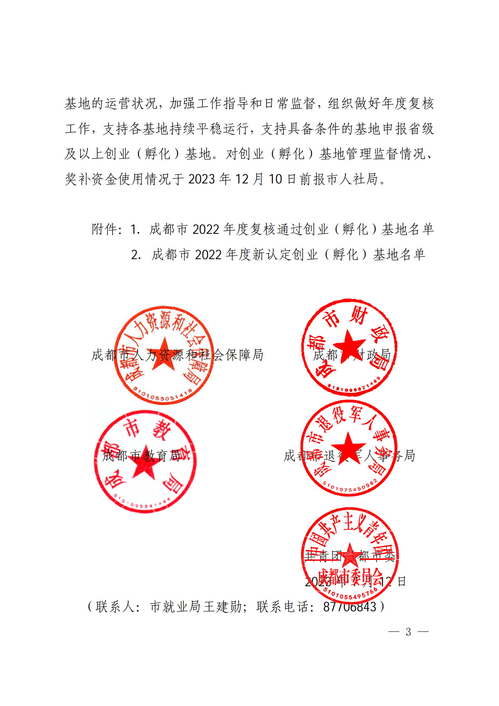 近日,成都市人力资源和社会保障局、成都市财政局等五部门联合发文,公布2022年度成都市创业孵化基地认定名单,我院众创空间正式获批为成都市创业孵化基地。此次申报认定历时近9个月,经过了申报材料初审、现场考评、第三方机构审查、专家组考查、市级主管部门复审等环节,我院从众多申报单位中突围,成功获评,也是温江区送推参评的5家双创载体中唯一一家获得认定的载体。该项荣誉的获得彰显了学院近年来双创教育及孵化载体建设的成效。今后,创新创业学院将持续强化载体建设,助推学院师生、校友双创成果。