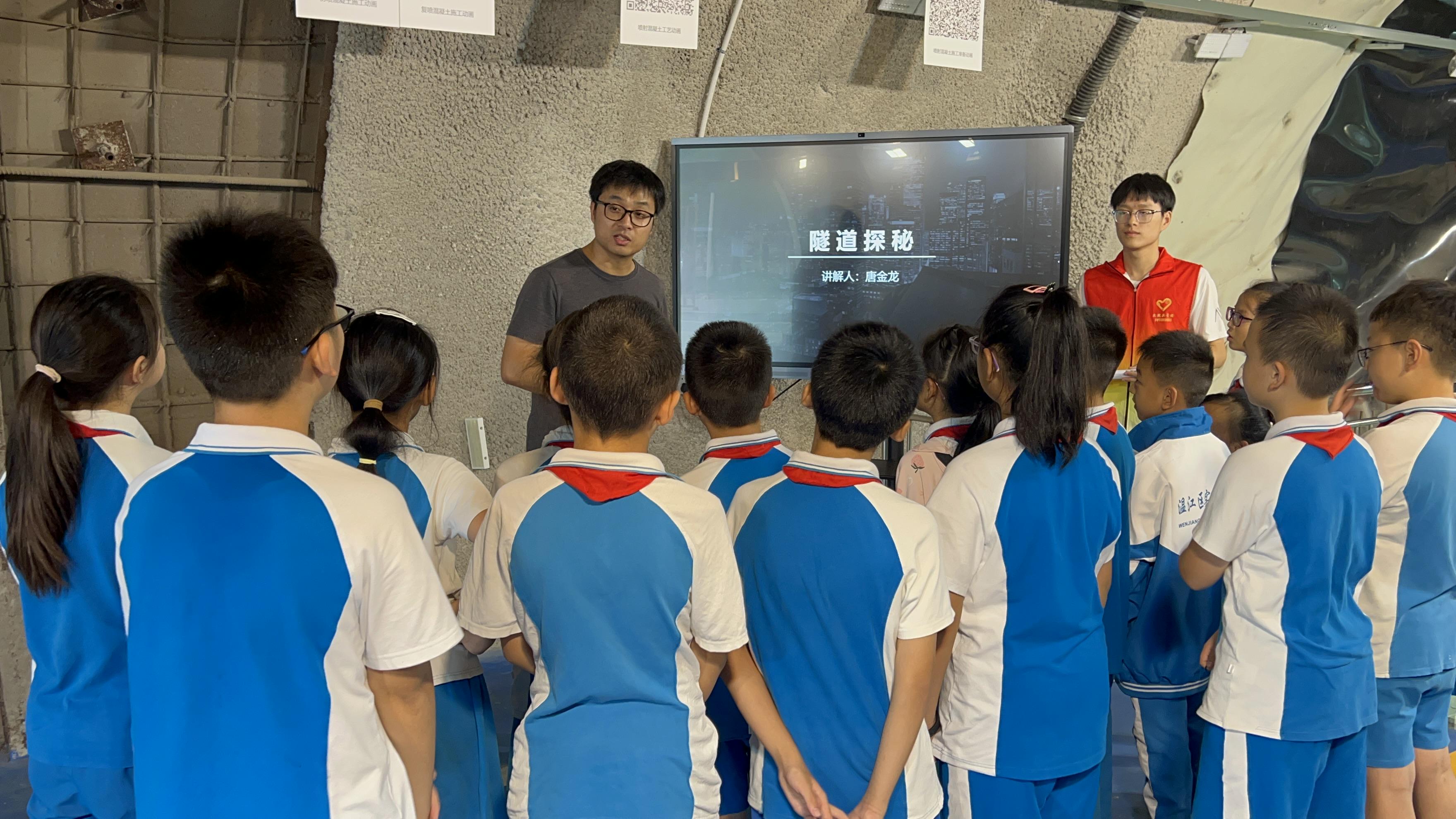 此次研学活动的内容丰富多彩,实验学校师生在志愿者的带领下,依次参观了科普基地的云游蜀道馆、隧道探秘馆和安全体验馆,听工作人员绘声绘色地讲解蜀道变迁史,看真实的隧道施工环境和盾构机,练习心肺复苏和止血包扎的操作要领,沉浸式体验许多公路工程的建造技术、施工过程和安全事故相关的虚拟现实资源、设备或项目,并在此过程中与我基地近30名工作人员和志愿者密切交流和互动,结下了深厚的友谊。