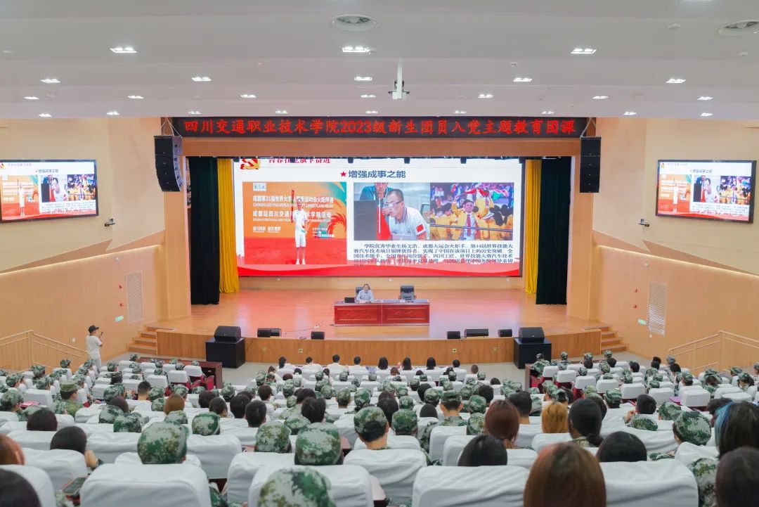 近日,学院面向2023级400余名新生团员代表开展入党主题教育团课。交职院党委书记冯书明以“凝聚党旗下”为主题,从党的性质和宗旨、青春在党旗下奋进两个方面为新生团员讲授了开学的第一堂团课。