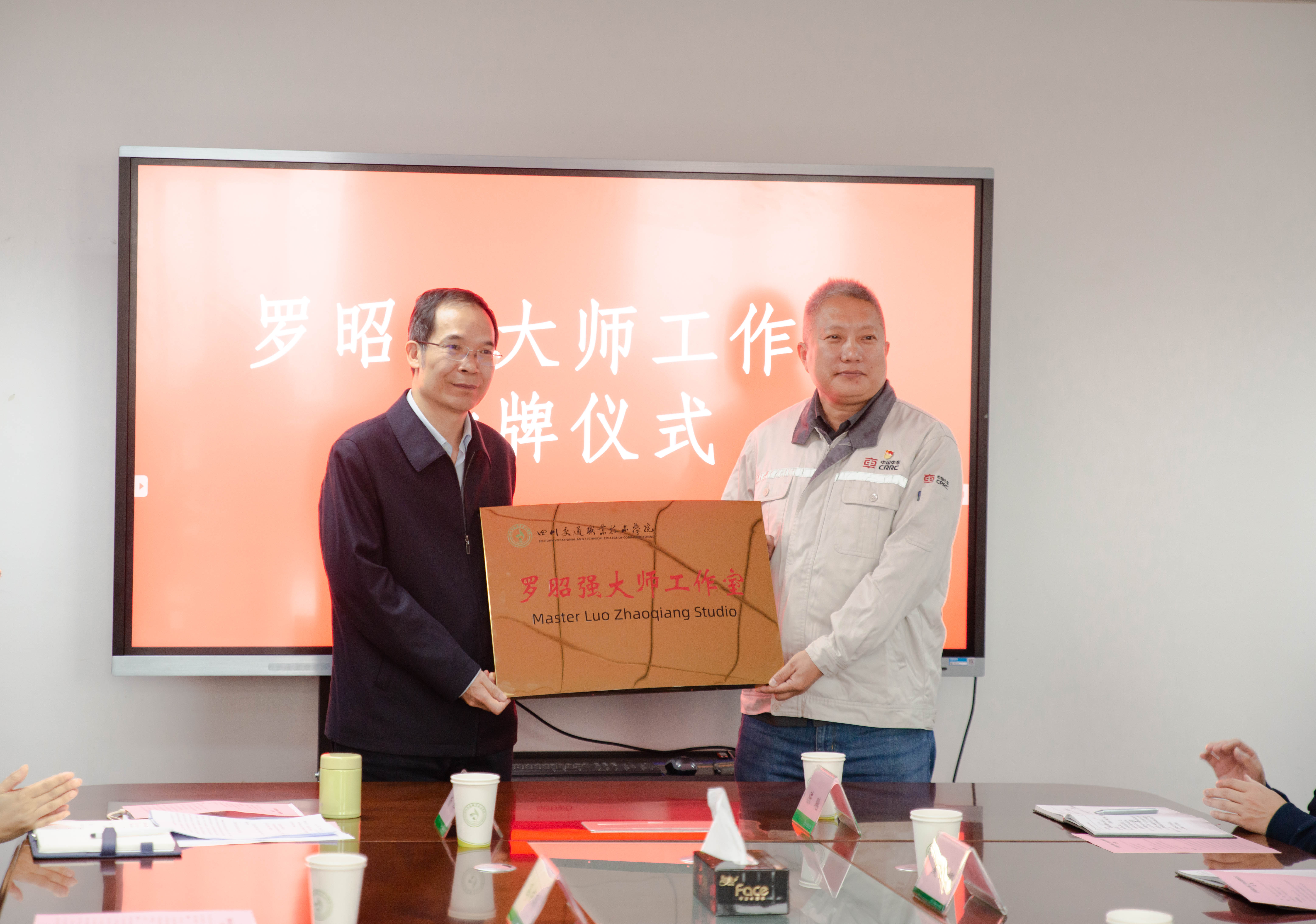 近日,罗昭强大师工作室揭牌仪式在学院举行。学院党委书记冯书明,党委副书记李红,党委委员、副院长杨桦,中国中车首席技能专家、中车长客首席操作师罗昭强,成都中车长客轨道车辆有限公司综合部部长张琦,成都中车长客轨道车辆有限公司技术质量部部长张云,学院党委行政办公室、组织人事处、教务处及轨道交通工程系负责人出席揭牌仪式。
