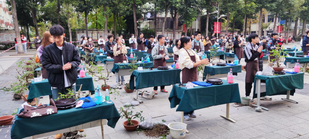 11月18日,学院艺术与设计系环境艺术设计专业依托盆景大师工作室及微景观艺术协会,联合农职院及温江区校企合作单位共同组织“2023温江区职业院校‘盆景制作’邀请赛”。来自温江区不同高职院校、企业和社团的盆景爱好者们齐聚一堂,共同参与见证了这场盆景盛宴。我院艺设系环境艺术设计专业有17名学生积极踊跃报名参赛。经过激烈角逐,我院学生荣获二等奖2项,三等奖1项,优胜奖4项;其中谢冰鑫、刘希、李米琪同学将获四川省盆景协会、成都三邑园艺绿化工程有限公司等联合颁发的“乡村工匠”称号及证书,获得优胜奖同学将获得“乡村技艺能手”称号及证书。