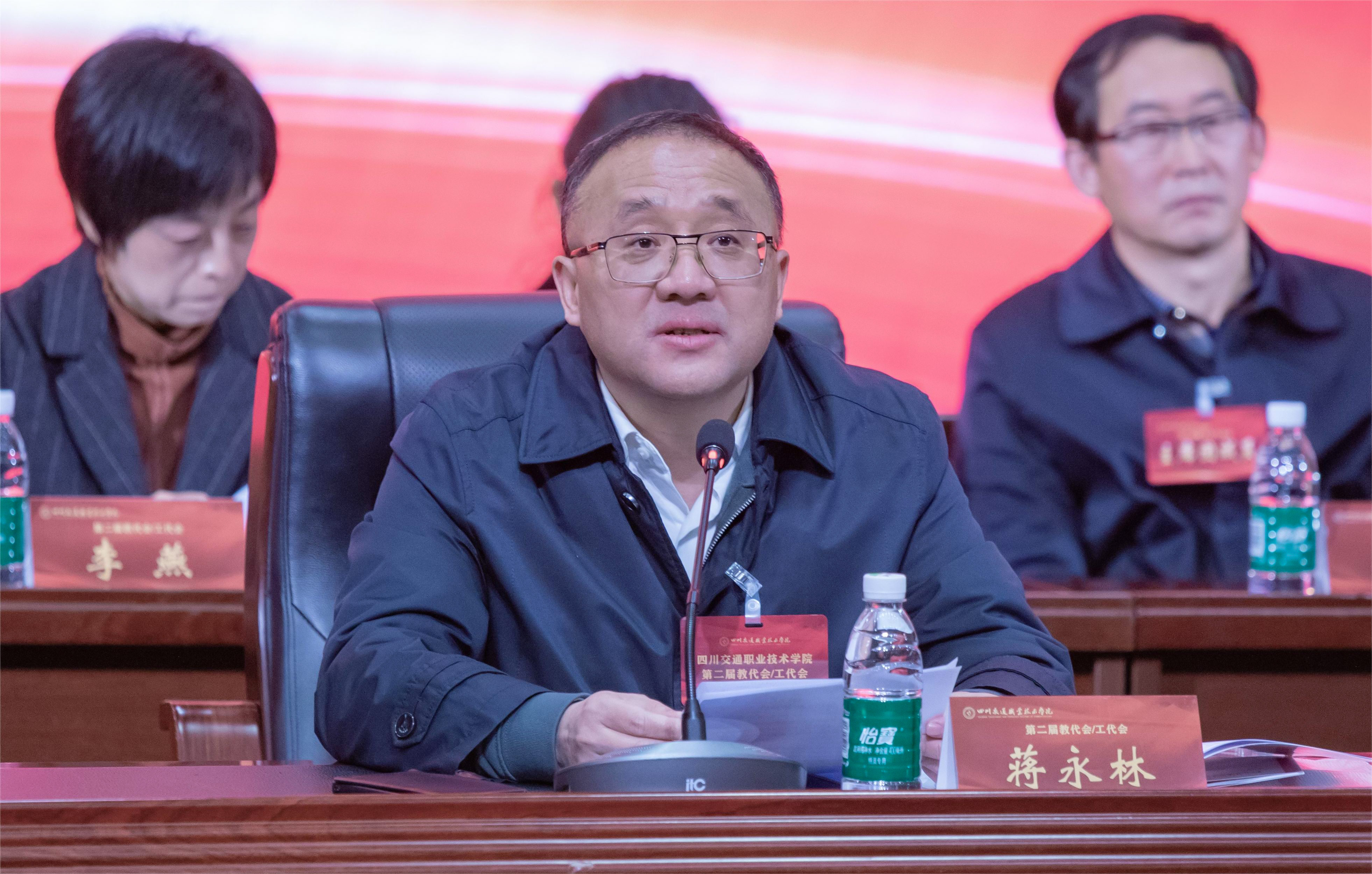 最后,学院党委副书记、院长蒋永林总结发言,他表示,大会期间,各位代表以习近平新时代中国特色社会主义思想为指导,结合学院实际,认真履职,以高度负责的态度,听取、审议了学院相关工作报告和议题。