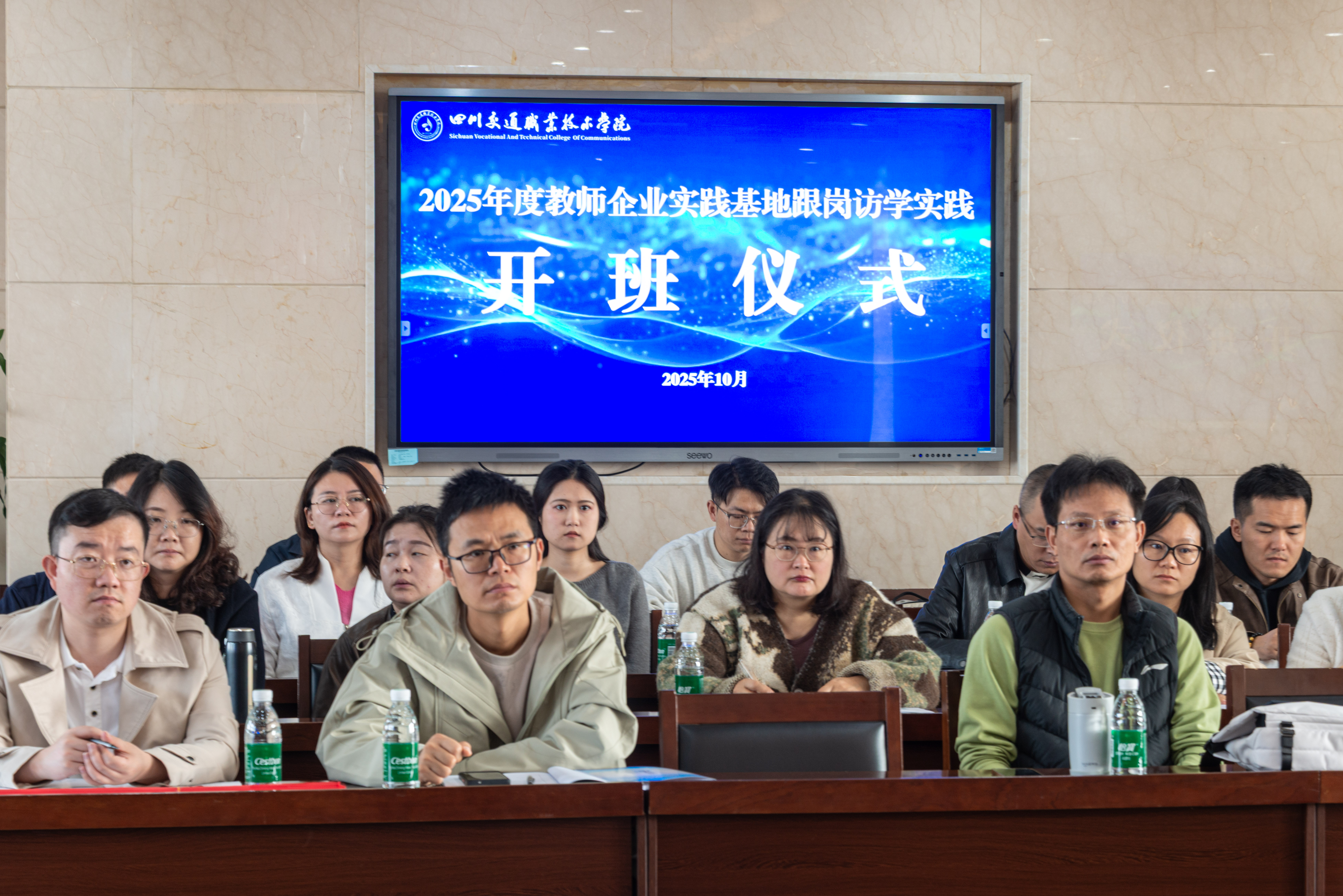 10月27日,四川省2025年度职业院校教师素质提高计划——高职教师企业实践项目培训班在我院正式开班。本项目由四川省教育厅主办,四川交通职业技术学院承办,共有来自全省26所高职院校的30名“双师型种子教师”参加,培训为期28天。项目采用“院校专家+企业骨干”相结合的师资模式,以及“理论+实践”并重的培养方式,旨在全面提升参训教师的专业能力与教学水平。学院党委委员、副院长刘玉荣出席开班仪式并致辞,建筑工程系主要负责人及教学统筹服务团队成员共同参加。