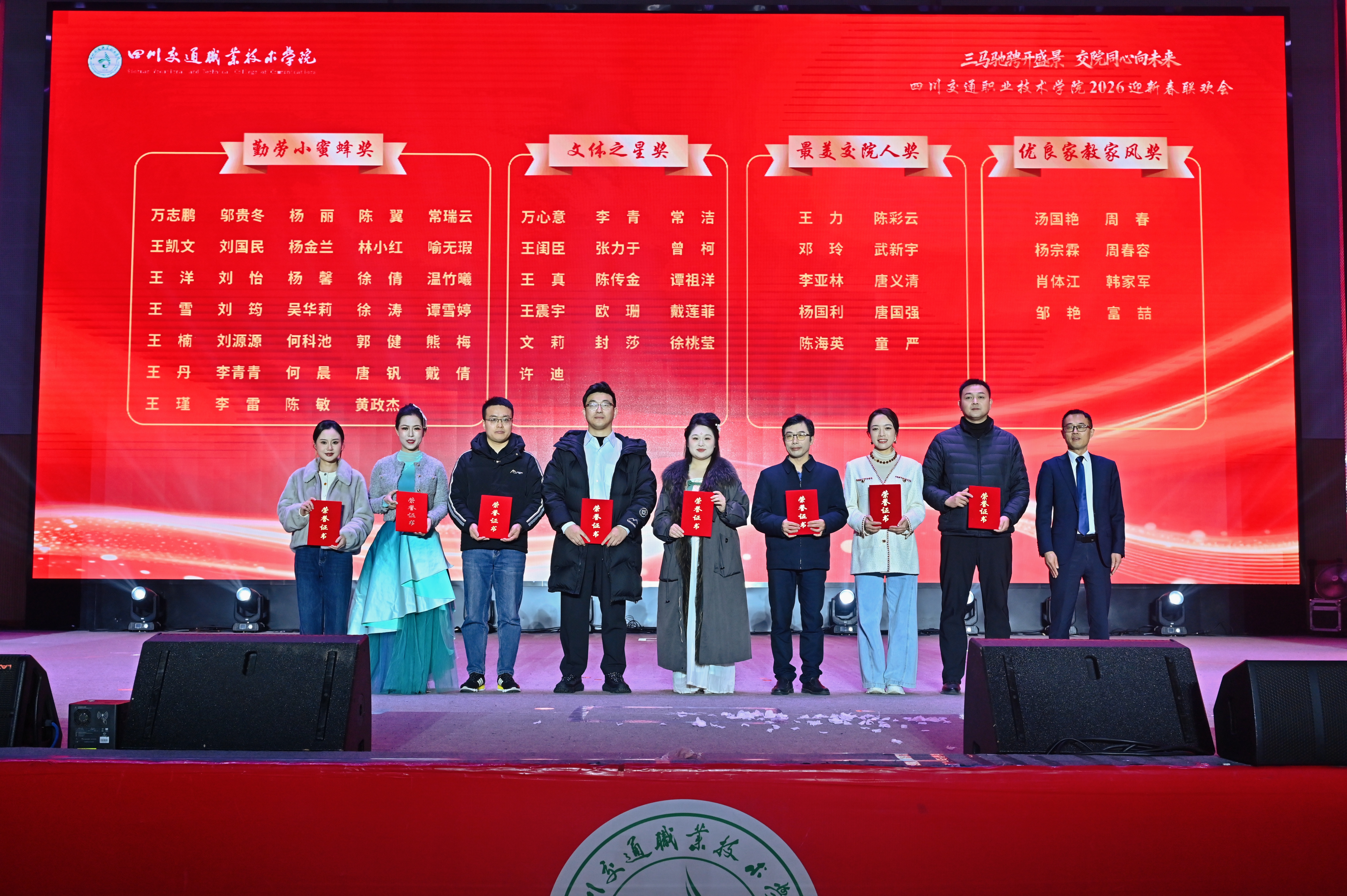 1月9日,四川交通职业技术学院成功举办2026年迎新春联欢会,学院干部职工齐聚一堂、共迎新春。在家院领导、退休领导和全院教职工代表400余人参加。