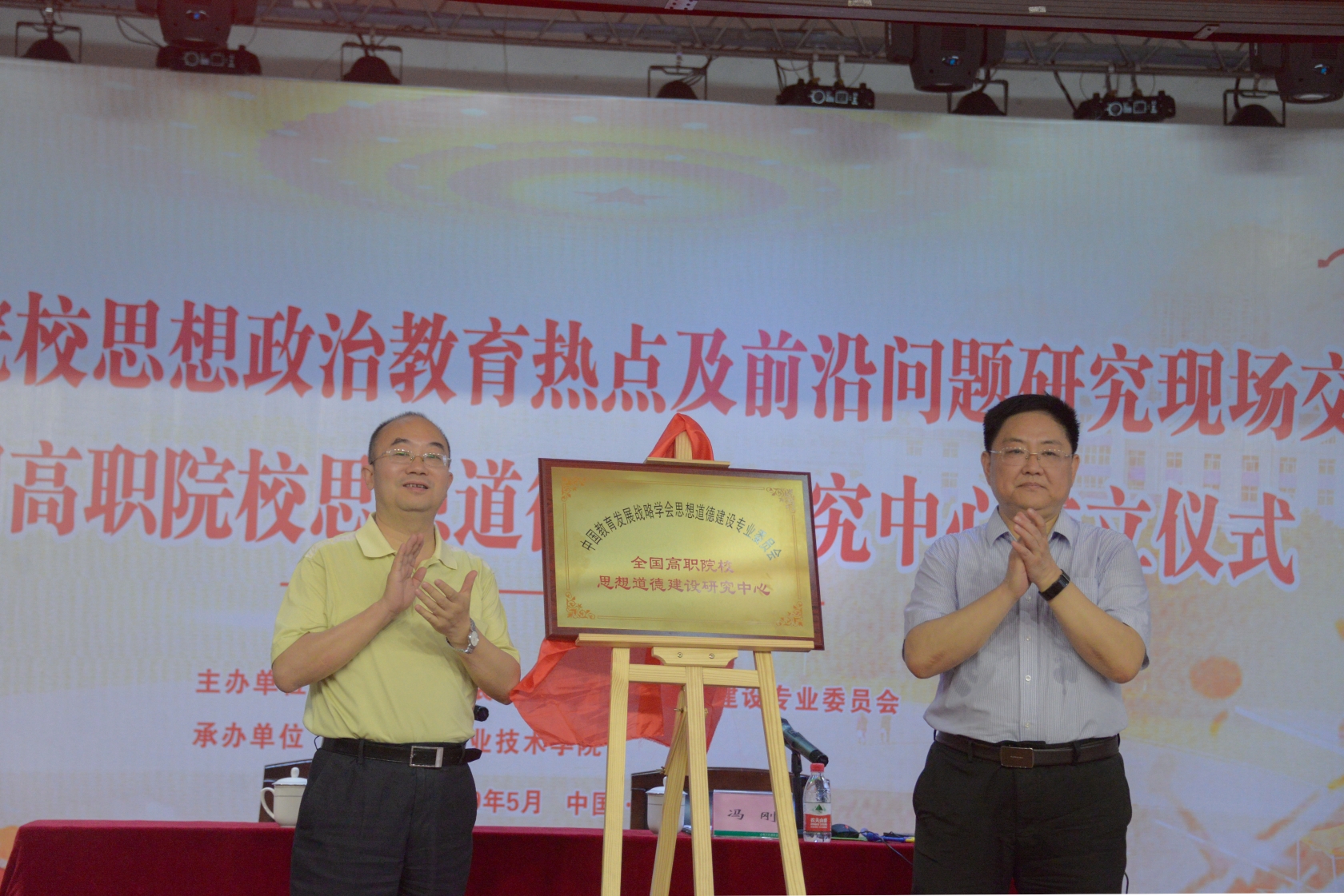 在全国高职院校思想道德建设研究中心举行成立仪式上,冯刚理事长宣读了中国教育发展战略学会思想道德建设专业委员会批复,聘请了10所高职院校的党委书记为研究中心的首批特约研究员,研究中心秘书处设在四川交通职业技术学院。随后,冯刚理事长和中国教育发展战略学会思想道德建设专业委员会副理事长、四川交通职业技术学院党委书记王东平共同为研究中心揭牌。