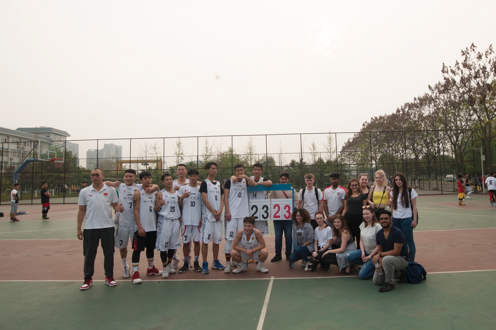 团委还组织了中外学生联谊活动。交院学生展示了民族舞、太极和书法等才艺,并现场和英国学生互动交流,一起跳锅庄、打太极、写汉字,两校学生还举行了一场篮球友谊赛。