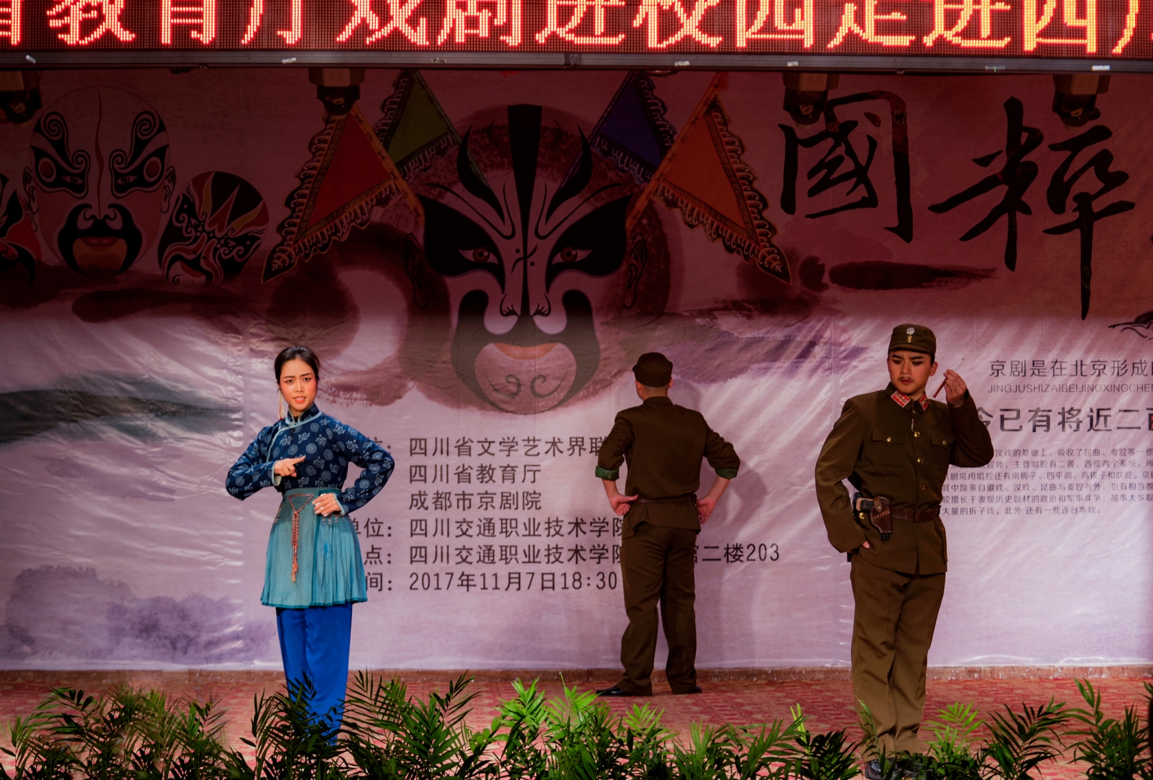 11月7日晚,由四川省文学艺术界联合会、四川省教育厅、成都市京剧院主办的戏剧进校园活动在我院博学馆203举行。