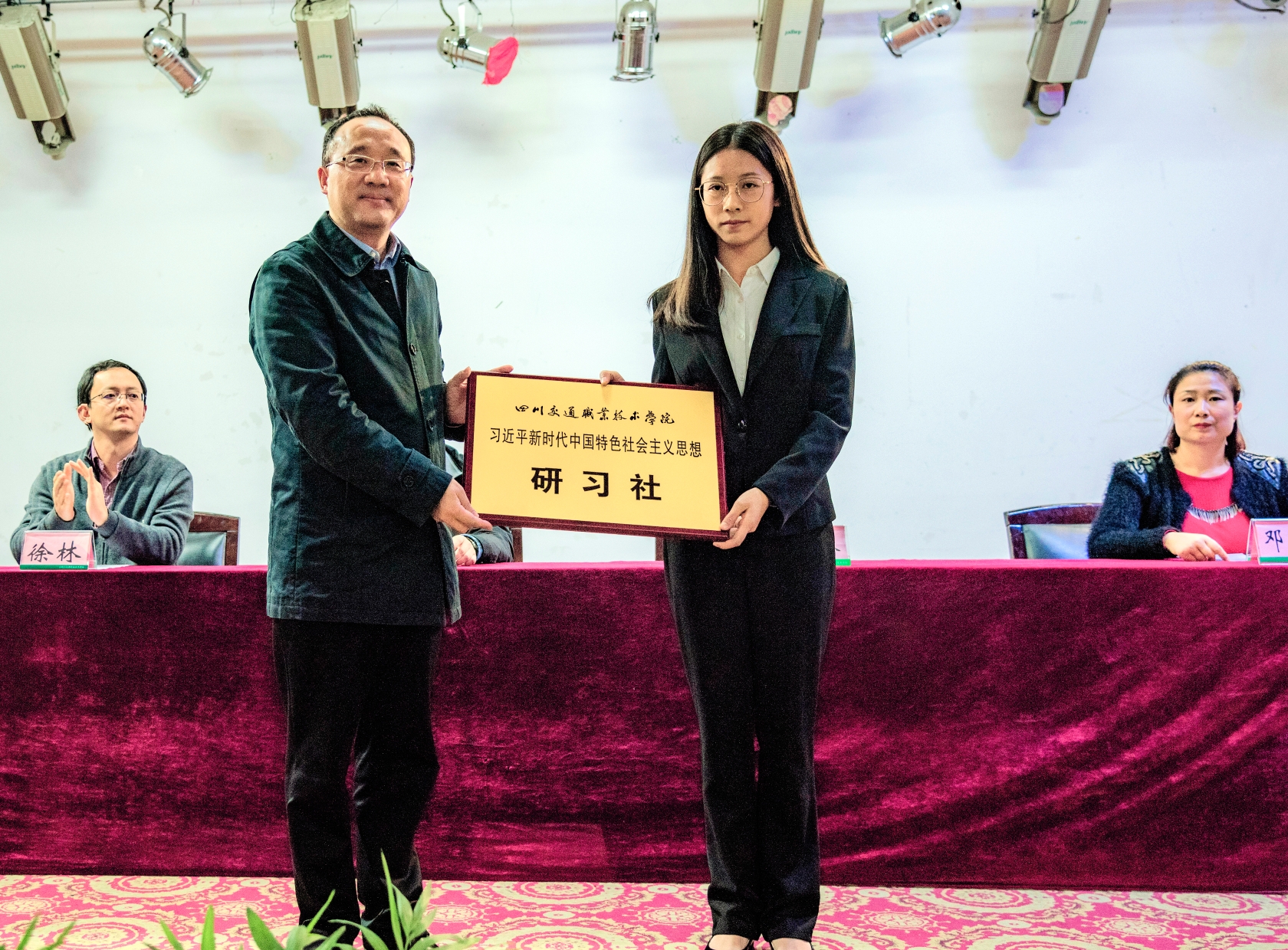 研习社的成立得到了学院党委的高度肯定和支持,蒋永林为习近平新时代中国特色社会主义思想研习社颁发了协会牌匾。徐林为协会指导老师代表颁发聘书。