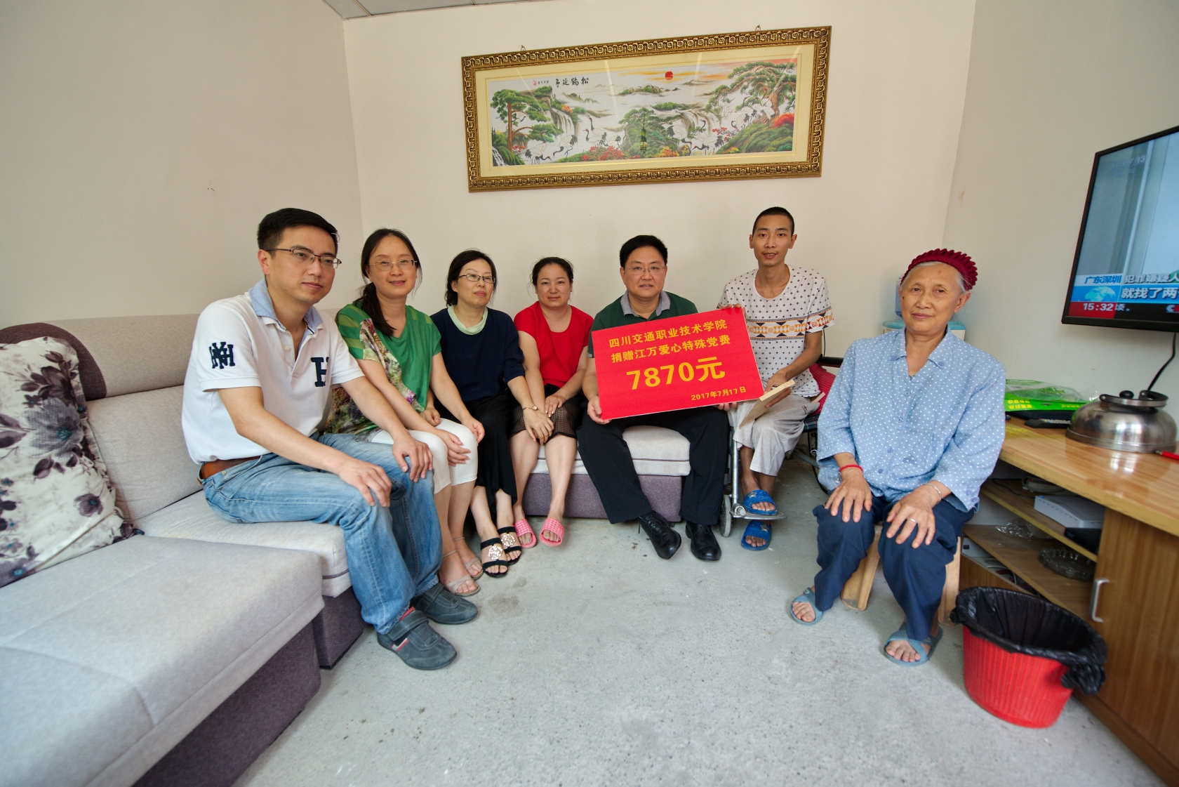 7月17日,学院党委书记王东平与组织人事处、人文艺术系、思想政治理论课教学部特地往金口河区新村村,为2017年新增结对帮扶户江万送去了一份特殊的礼物——7870元特殊党费。