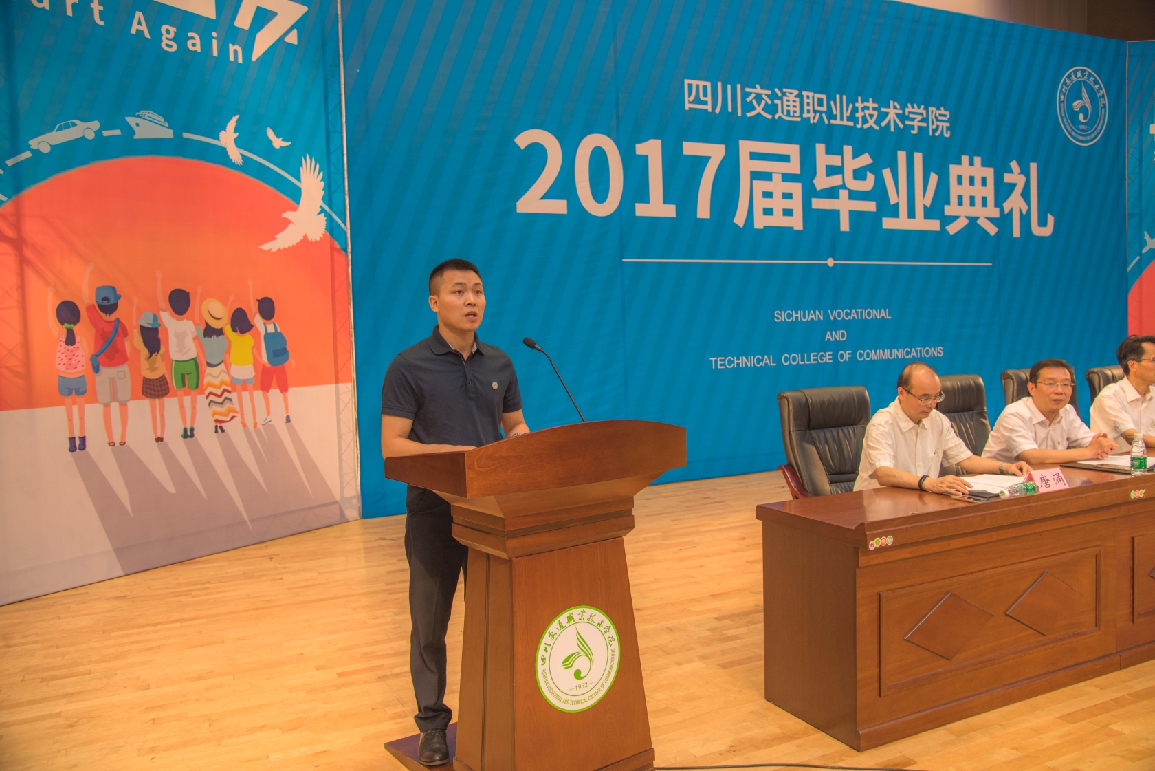 一年一届的毕业典礼总是让人激动、感动。三年前,同学们带着一双清澈见底的目光走进四川交通职业技术学院,打量着郁郁葱葱的校园,带着青春年少的芬芳齐聚于此,开启了属于自己的大学篇章。白驹过隙,千余个日夜恍然而逝,作为院长,我见证了大家的成长,犹如雨后拔节的竹笋,仿佛一夜之间长成了蔚蔚然的竹林,令人欣喜而感动。首先我要祝贺同学们圆满毕业,你们的成长来自于老师谆谆的教导,来自于父母事无巨细的挂牵,更来自于你们自己三年来的拼搏上进、刻苦努力,希望你们将这份经历收藏好,在未来平淡无奇却又波澜壮阔的生活中能时不时的打开,想起这片承载你们青春的土地。