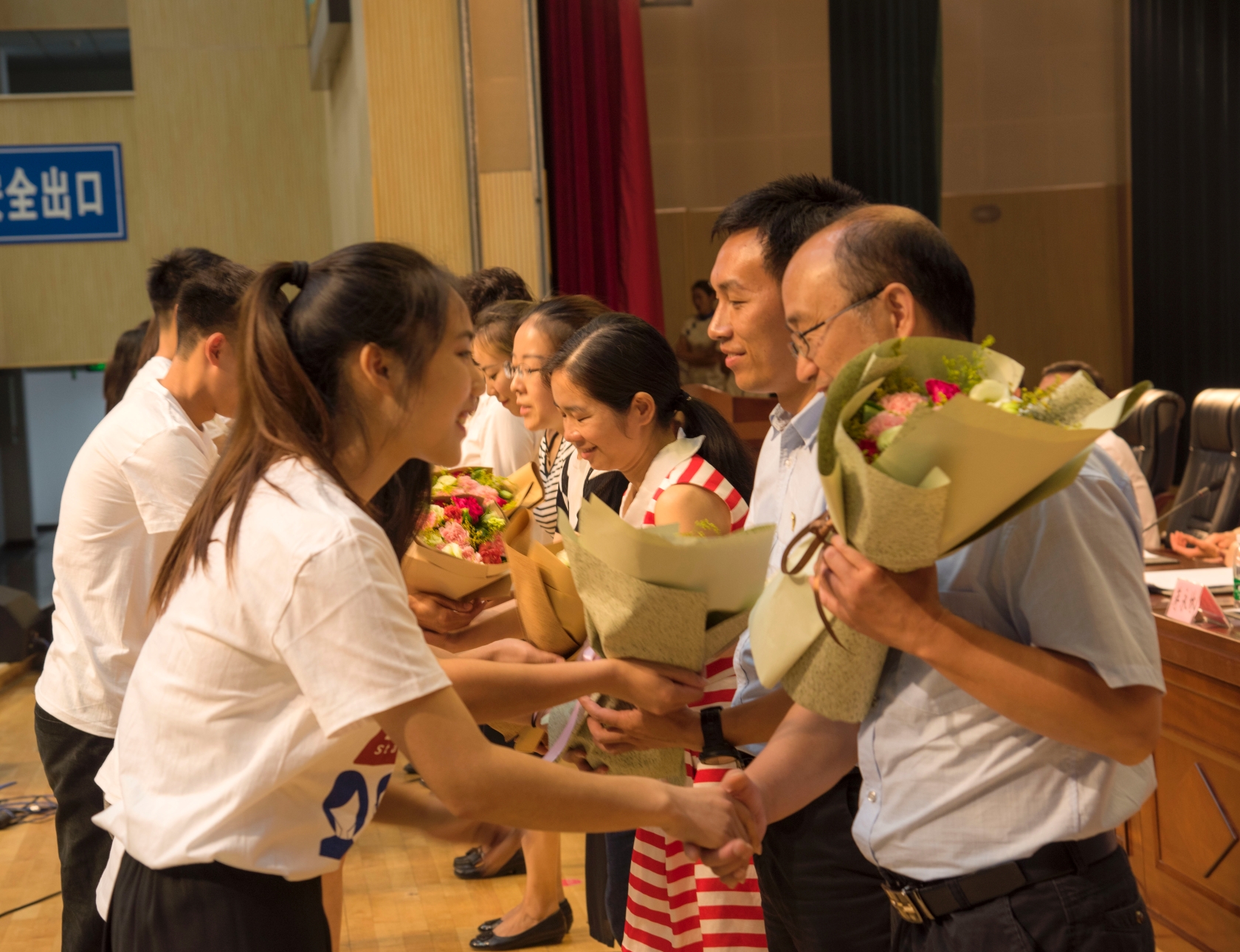 典礼上,毕业生代表为教师、辅导员、宿管、后勤、家长代表鲜花表达了他们的谢意。