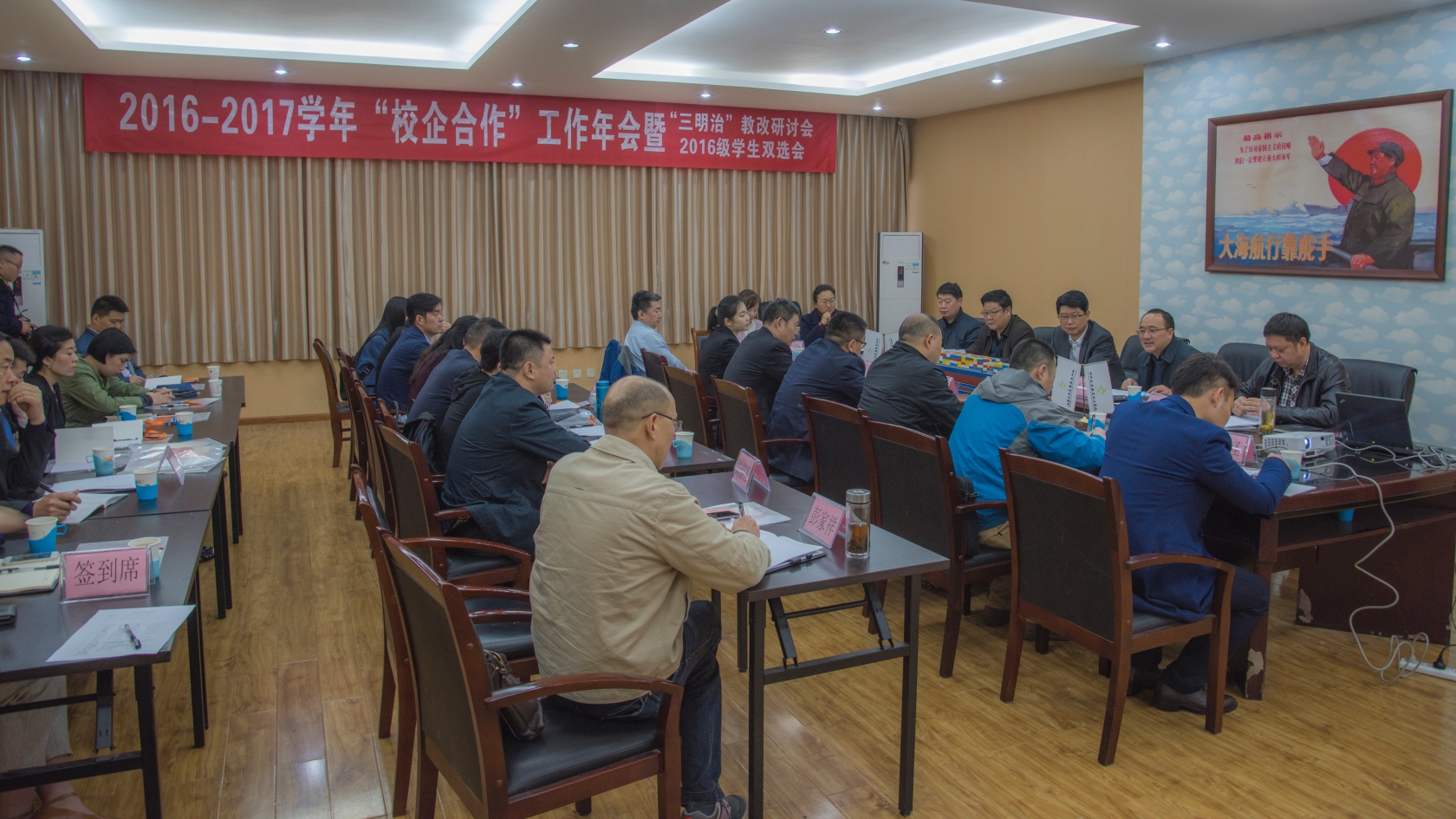为进一步深化产教融合、校企合作,4月6日上午,我院航运工程系召开2016-2017学年校企合作工作年会暨教改研讨会。长江海事局船员处副处长林承志,学院党委副书记、院长蒋永林,副院长李全文,大连国际、上海鹤胜海员管理有限公司等13家负责人,航运工程系相关工作人员出席会议。