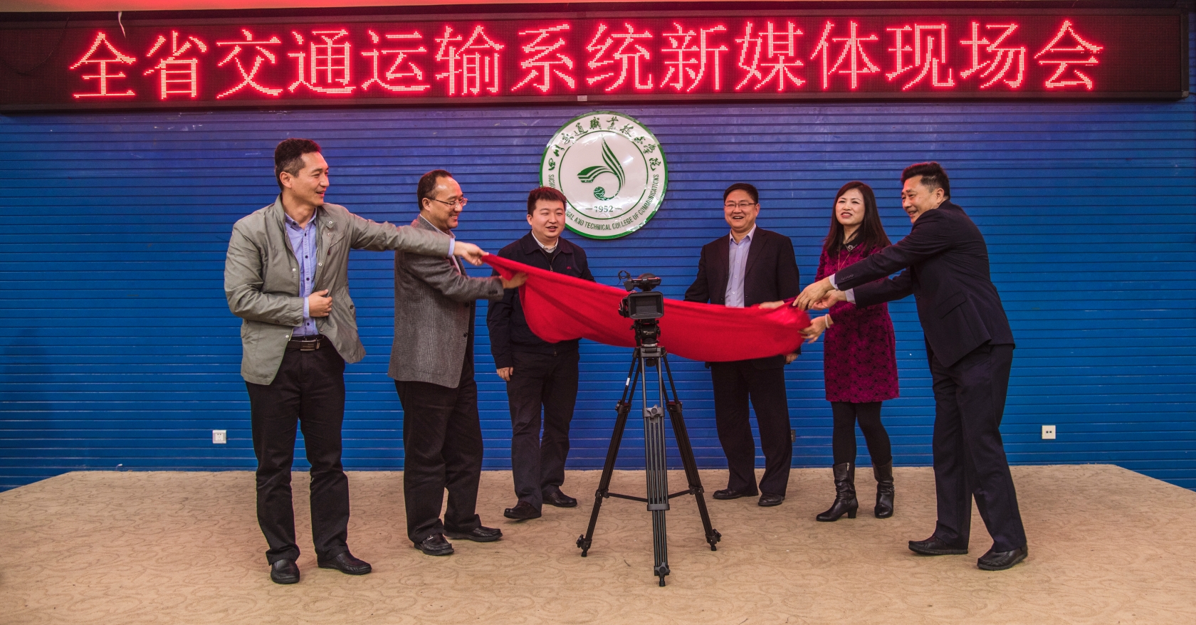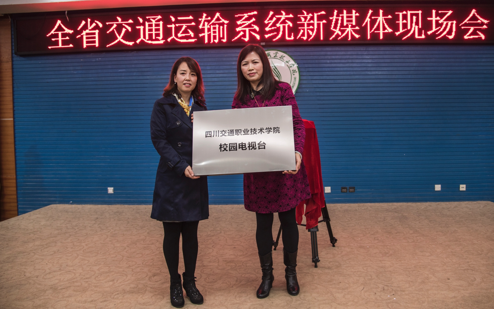 在11月4日召开的全省交通运输系统新媒体现场会上,学院举行了校园电视台开播仪式。厅宣传中心主任吴丹为校园电视台授牌,出席会议的省交通运输厅办公室副主任朱江,厅宣传中心主任吴丹,学院党委书记王东平,院长蒋永林,厅宣传中心副主任徐航,学院党委副书记、纪委书记孙永辉为电视台揭幕,王东平宣布学院校园电视台正式开播。与会代表还观看了电视台新闻栏目《一周回眸》片段。