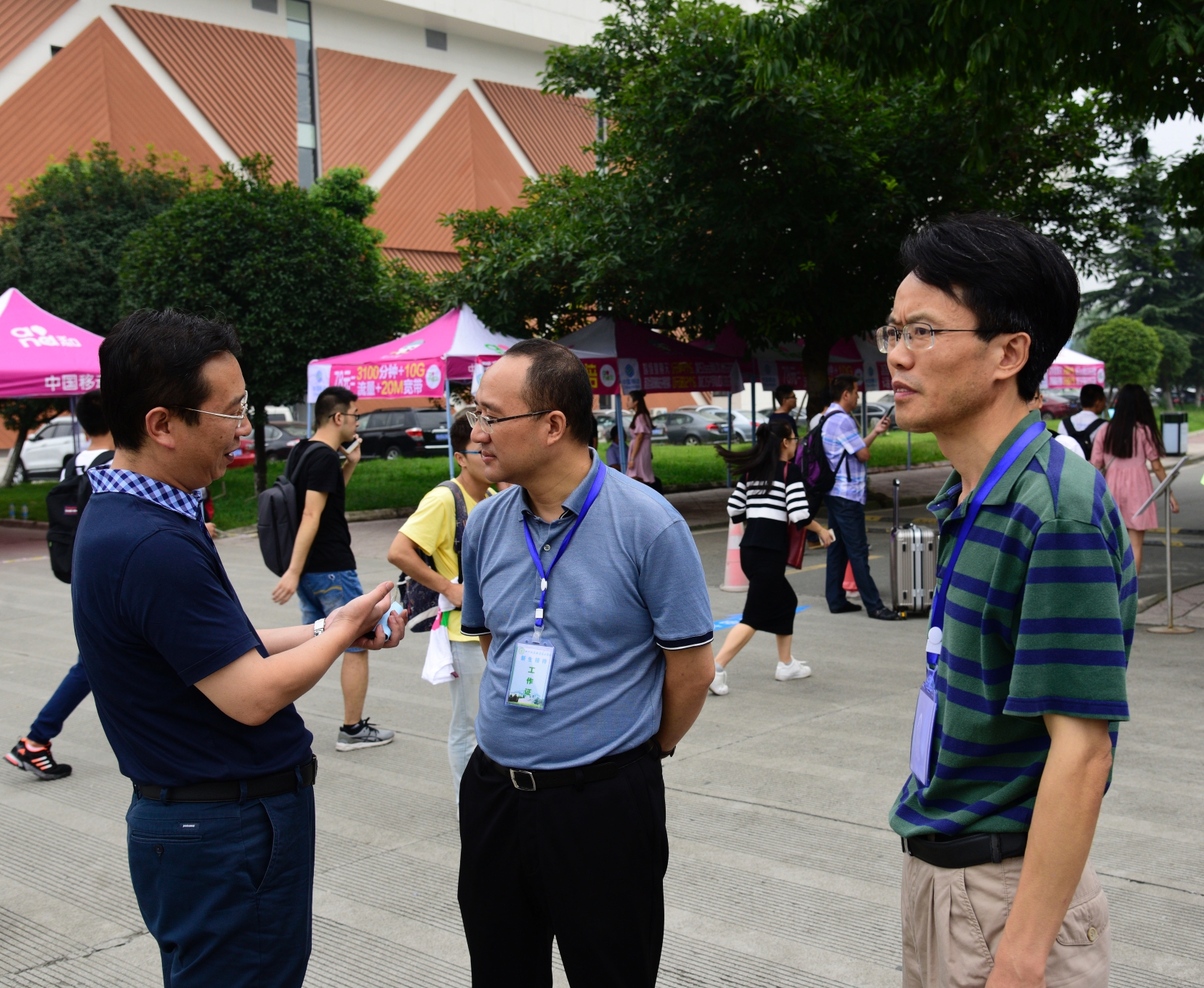 学院院长蒋永林(中)、副院长彭谦(右)、权全(左)在迎新现场