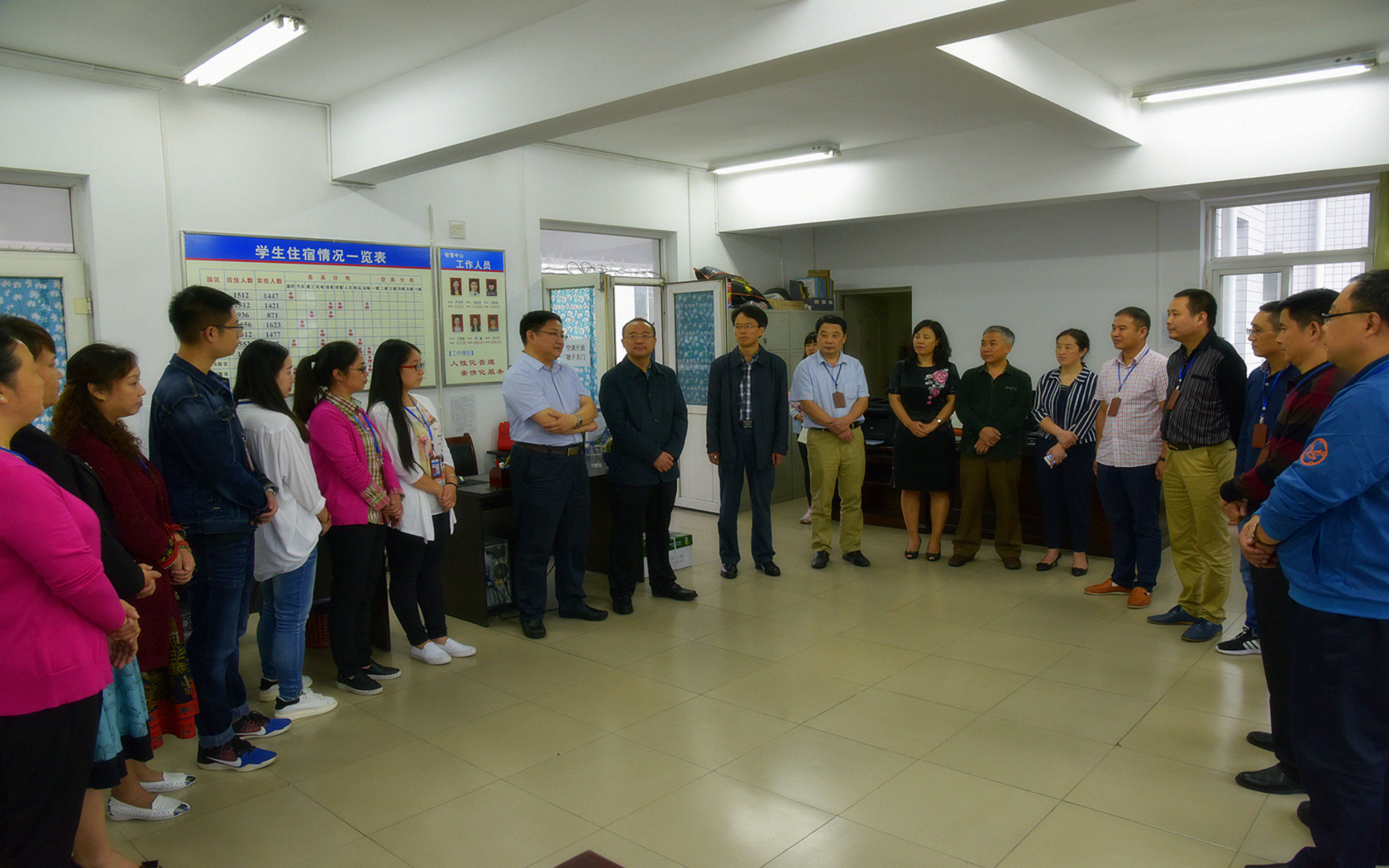 春花秋实,丹桂飘香,风柔雨润,花好月圆。在中秋佳节到来之际,学院党委书记王东平、院长蒋永林、副院长彭谦、副院长、工会主席任康秀一行,先后来到学院保卫处、2016级新生军训工作例会现场和宿舍管理中心,走访慰问了在过节期间坚守军训岗位的辅导员、宿舍管理人员及学院保安人员,亲自为教职员工发放了慰问品。陪同慰问的还有学院宣传统战部、工会、学生工作部和宿舍管理中心的相关负责人。