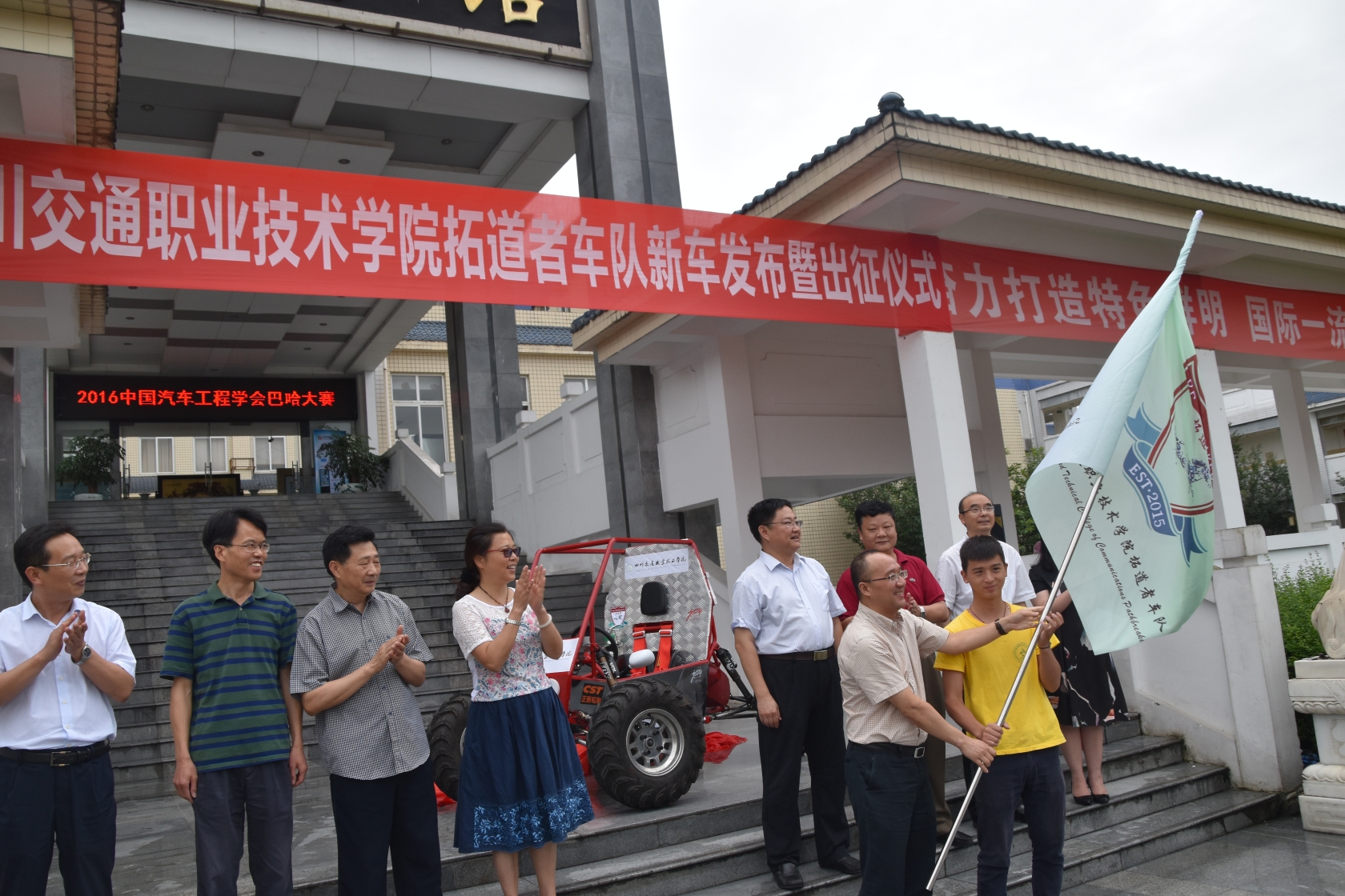 7月14日上午,机电工程系拓道者车队在紫毫广场举行2016年全国大学生巴哈大赛出征仪式暨新车发布会,师生们经过几个月努力,自主设计制造的赛车揭开了神秘面纱,同时,拉开了车队参加8月在金堂举办的全国赛事的序幕。