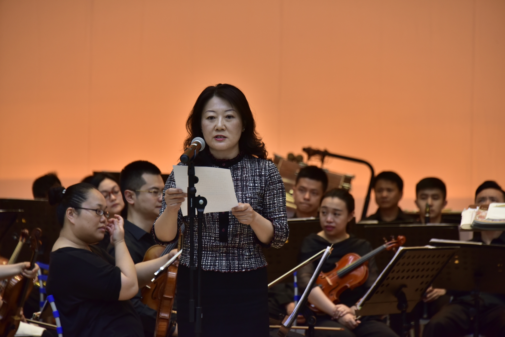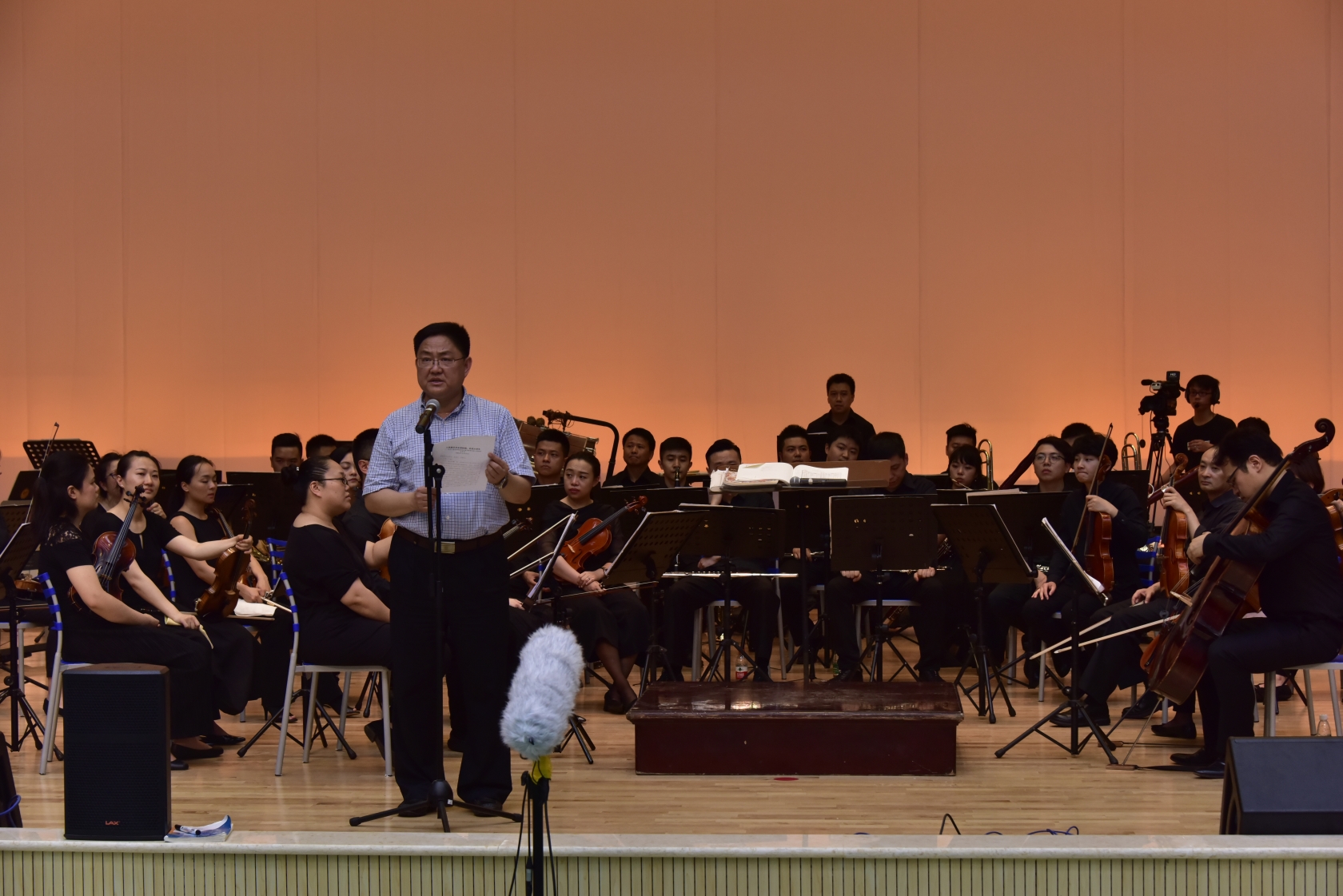 学院党委书记王东平致辞,对交响乐团的到来表示热烈的欢迎和衷心的感谢。王东平希望,全院学生以此次活动为契机,努力提升自己的文化修养和精神境界,为把自己培养成为全面发展的新时代青年而不懈努力!