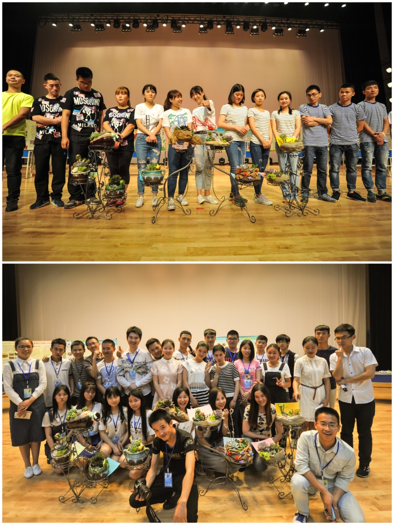 第二环节,“心灵花园DIY”。各代表队利用所选物品,运用团体的力量和智慧,即兴发挥搭建心灵花园,并赋予其心理意义。啦啦队的师生们,一边观看代表队的创作,一边欣赏“5.25”活动短片和心理沙画视频。“我们的青春,多彩缤纷”、“爱的守望”、“希望搭载梦想,步步走向心中的梦想。”……这些DIY作品的心理赋义,投射出一幅幅“我心向阳”的心理画卷。