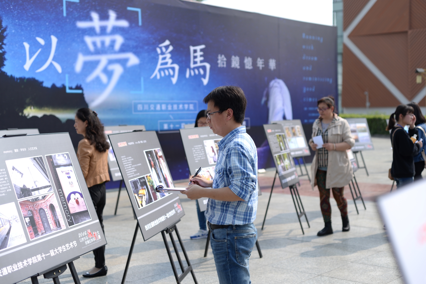 4月26日上午,由学院团委和工会主办,人文艺术系团总支承办的第十一届大学生艺术节——“以梦为马,拾镜忆年华”摄影比赛决赛在紫毫广场举行。