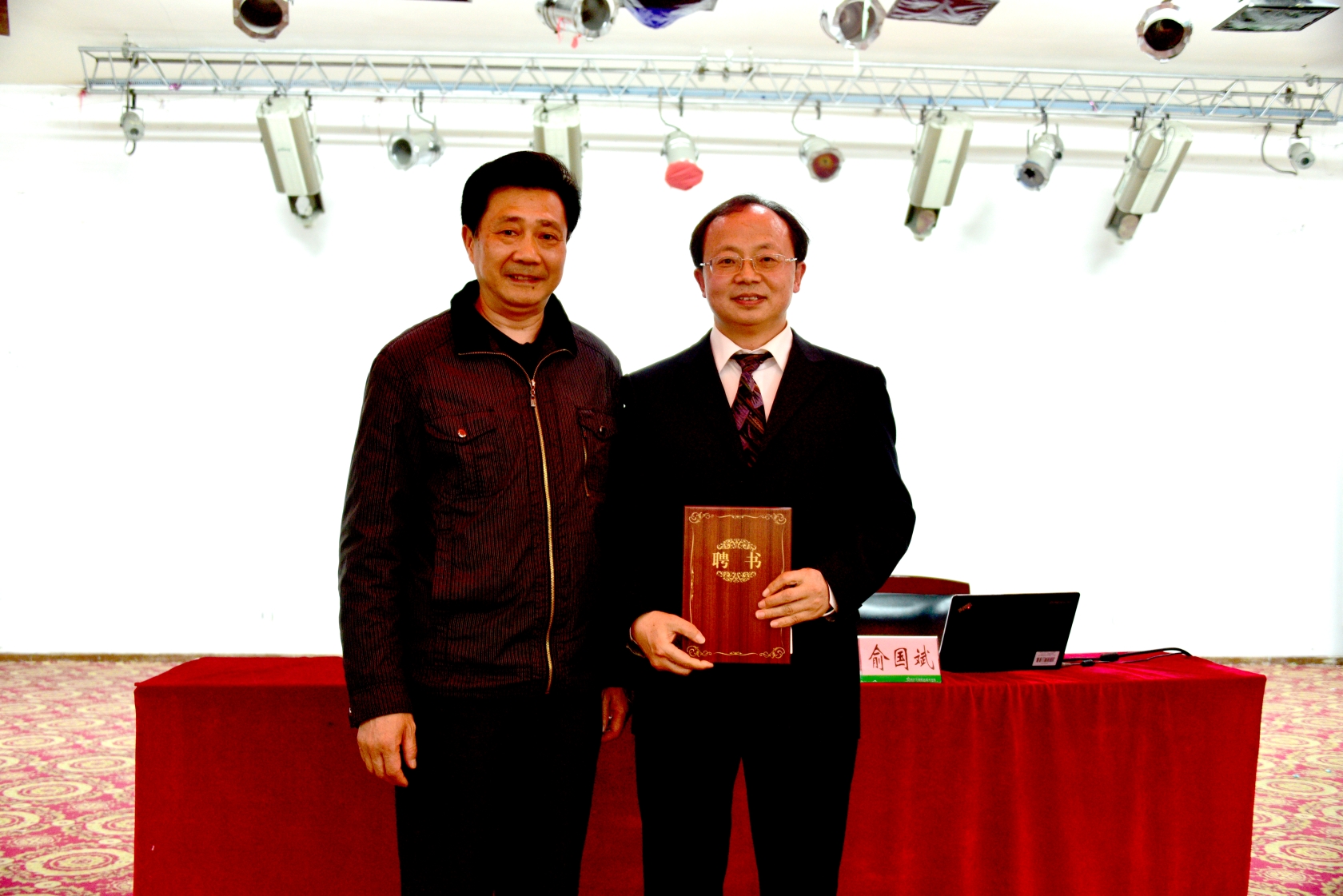 党委副书记、纪委书记孙永辉为俞国斌颁客座教授聘书