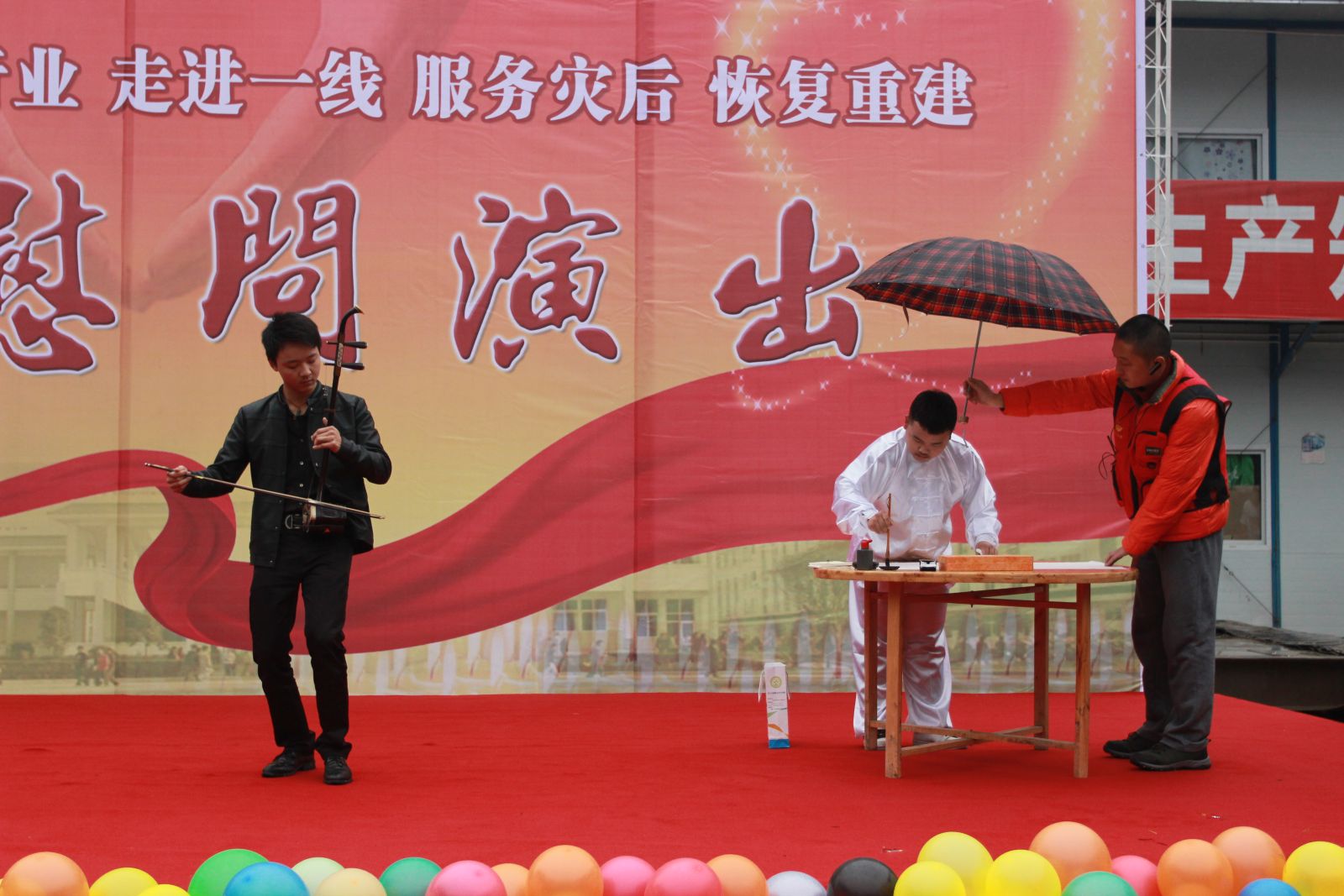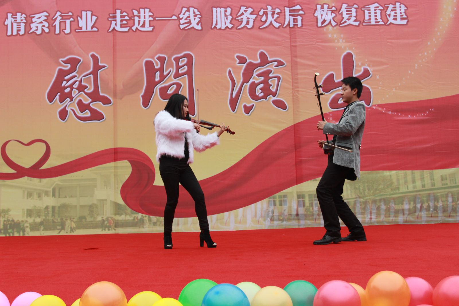 1月8日,学院师生组成的文艺演出小分队来到国道351雅安段LJ1标段项目部,为四川兴蜀公司奋战在一线的公路建设者们带来了一台主题为“情系行业,走进一线,服务灾后恢复重建”的慰问演出,极大地丰富和活跃了灾后重建项目建设者们的文化生活。