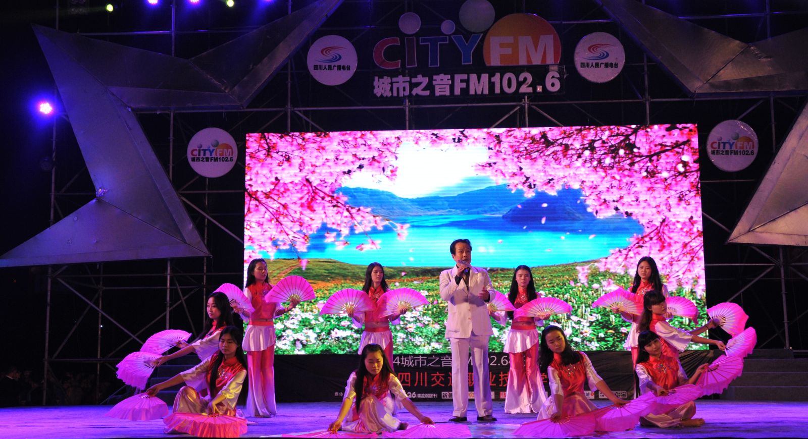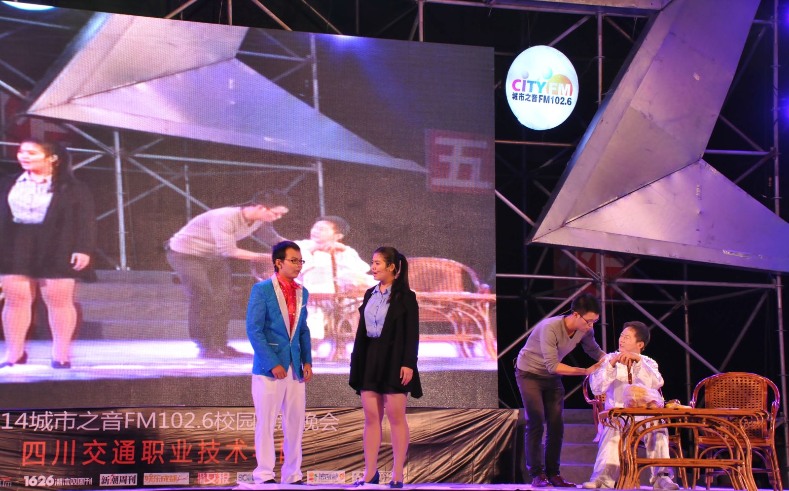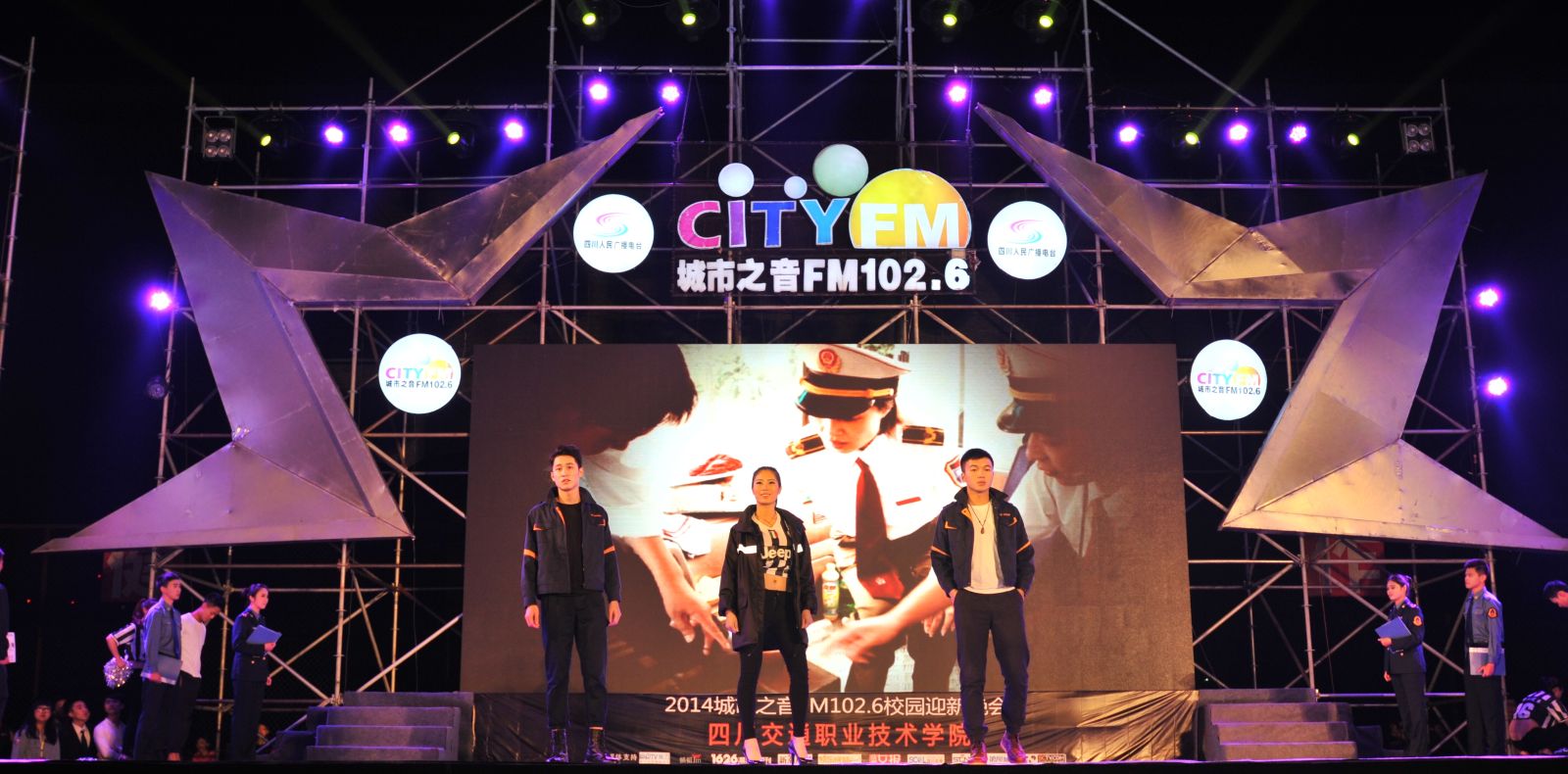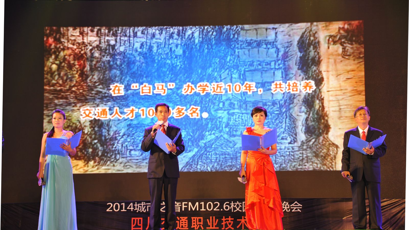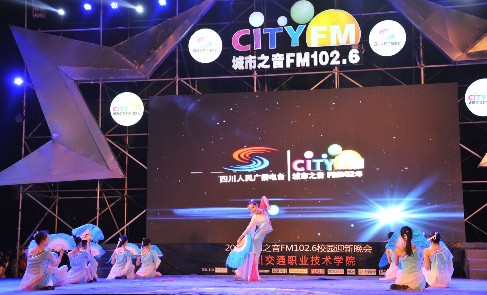 从开学至今,学院团委组织教师及各系同学,结合学院发展历程,编排了一系列反映学院建设与发展,展现学院精神的精彩节目,诗朗诵《光辉的历程》、音乐快板《教育忠魂礼赞》,歌诵我院自1952年建校以来经历成马、白马、金马三个时期艰苦奋斗,为交通行业育人无数,做四川交通建设人才保障的发展历程;藏舞《筑梦交通》,反映出我院培育出的交通人,以愚公移山之精神,矢志不渝、坚持不懈、筑梦交通,为国计民生、为民族团结作出巨大贡献;还有活力四射的现代舞、龙马精神的武术表演、乐器演奏、小品表演等,无不展示出我院师生积极向上的精神风貌。节目最后,晚会的合作伙伴四川人民广播电台城市之音FM102.6,邀请到台湾知名歌手辰亦儒现场演出,更是把现场气氛推向了高潮。