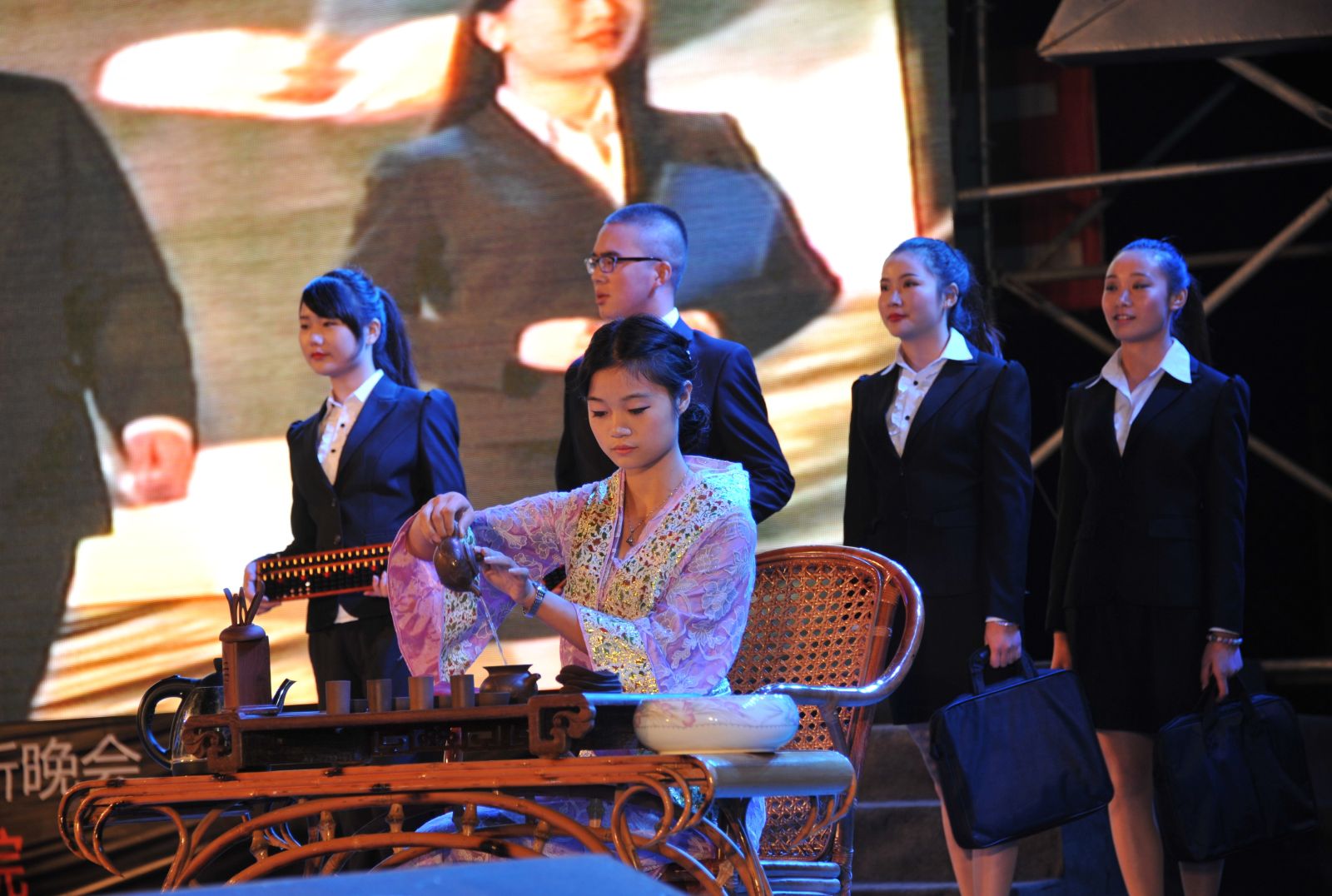 图为我院学生为歌手辰亦儒伴舞