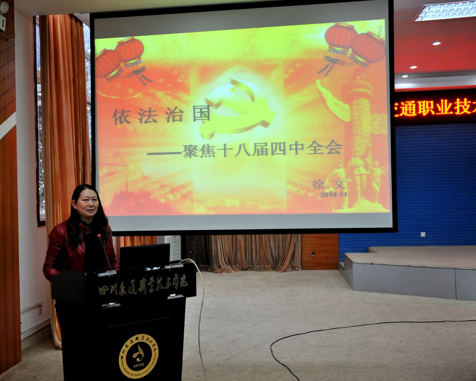 图为思政部徐文教授解读《中共中央关于全面推进依法治国若干重大问题的决定》