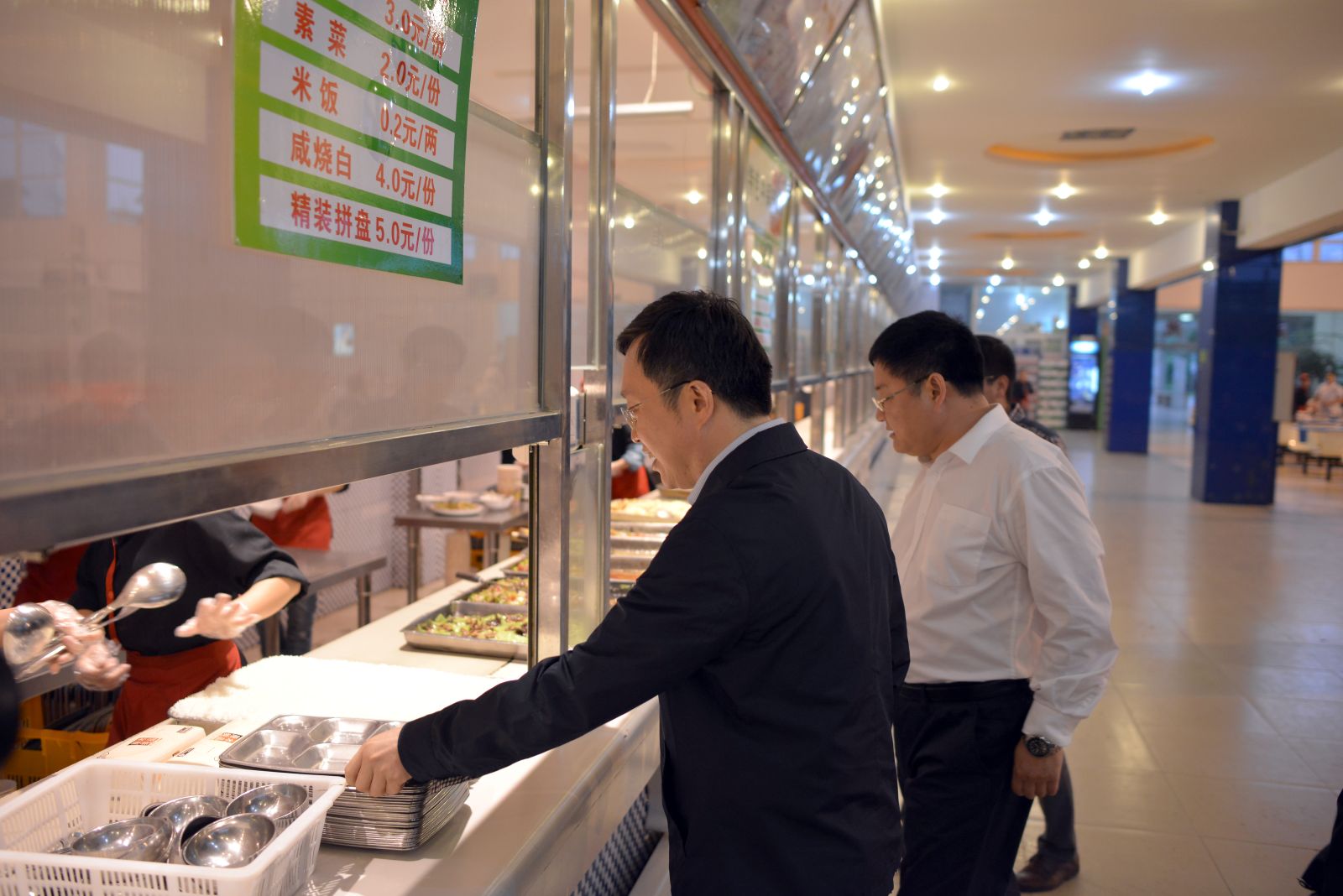 图为彭琳厅长兴致勃勃地在学生食堂用餐