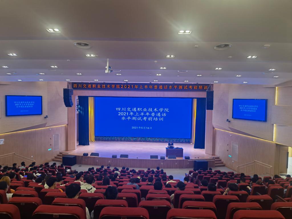 5月16日下午,交职院普通话水平测试考前培训在学院厚学楼汇报厅举行。此次培训主要针对报考2021年上半年普通话测试的学员,担任培训主讲的是四川省交通管理学校高级讲师、普通话国家级测试员杨波老师。培训中,杨波老师讲述了普通话有关的理论知识,教授学员们接受普通话测试的技巧和方法,用一些生动的实例与学员们进行精彩的互动,并就学员们提出的有关疑难作了详细的解答。