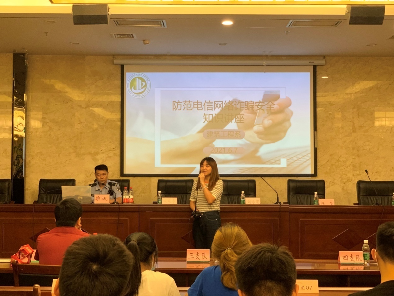 为进一步加强校园防诈骗宣传教育,提高广大学生安全意识与反诈骗常识,6月7日,交职院建筑工程系在明德楼B319举办防诈骗安全讲座。讲座邀请了万春派出所梁斌警官主讲,师生代表共计230人参与了本次讲座。