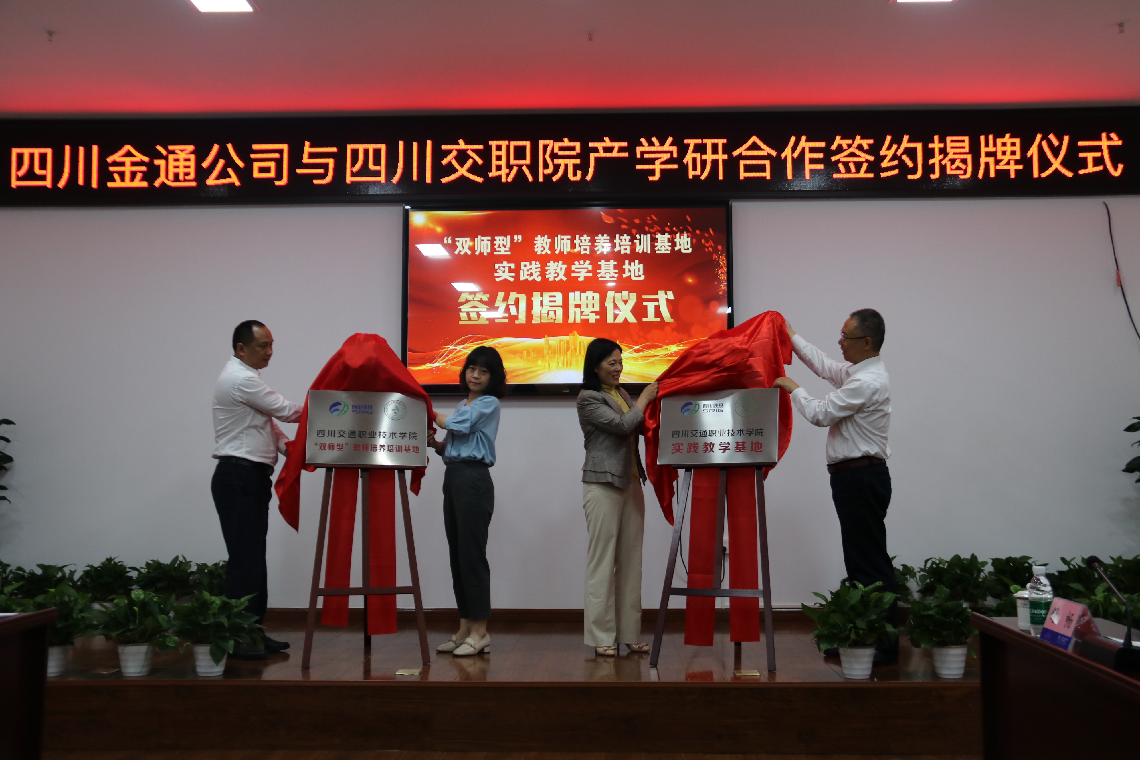 四川金通公司党支部书记、执行董事、总经理赵丹,四川交职院党委委员、副院长刘玉荣代表双方正式签署了《产学研合作暨“双师型”教师培养培训基地、实践教学基地战略合作协议书》,明确了合作宗旨、合作内容、保障机制等若干事项。随后,进行揭牌仪式,正式开启双方在深化产学研合作、协同培育人才、共建实训基地、共担科研项目等方面合作大门。