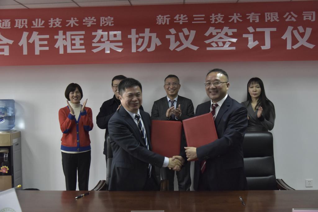 最后,蒋永林、刘小兵别代表四川交通职业技术学院、新华三技术有限公司签署《四川交通职业技术学院新华三技术有限公司战略合作框架协议》。