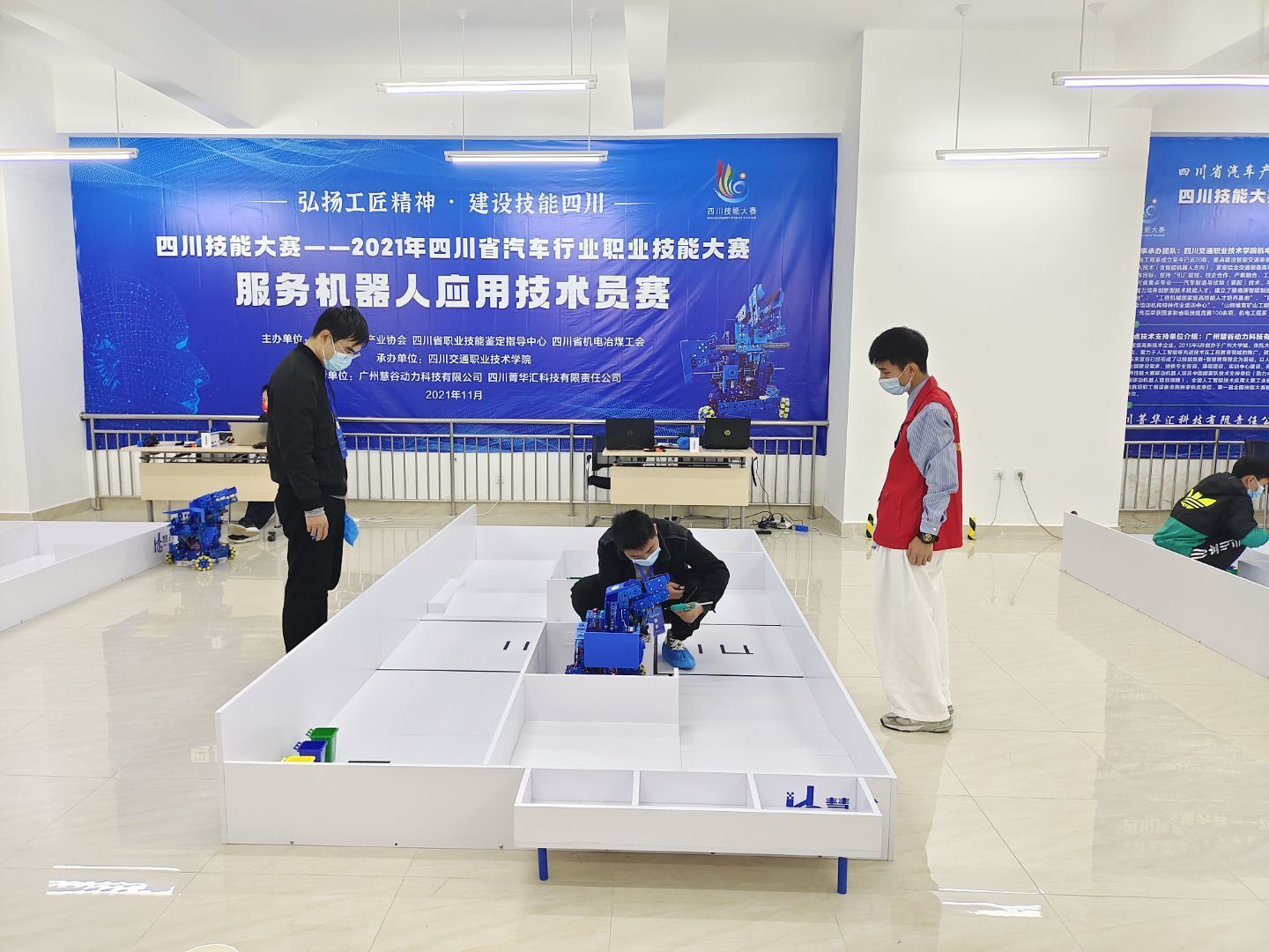 2021年10月31日至11月1日,2021年四川省汽车行业职业技能竞赛服务机器人应用技术员赛项在交职院举行。大赛为省级二类竞赛,由四川省汽车产业协会、四川省职业技能鉴定指导中心、四川省机电冶煤工会主办,四川交通职业技术学院承办,广州慧谷动力科技有限公司、四川菁华汇科技有限责任公司、向平汽车维修技能大师工作室协办。