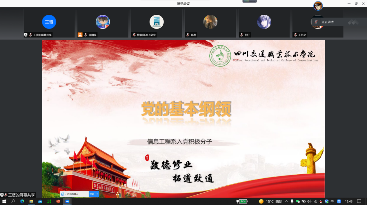 本次培训课由马克思主义学院党总支青年委员王贤老师为培训班学员授课,授课内容为《党的基本纲领》。信息工程系学生支部委员和85名入党积极分子参加了线上培训会。