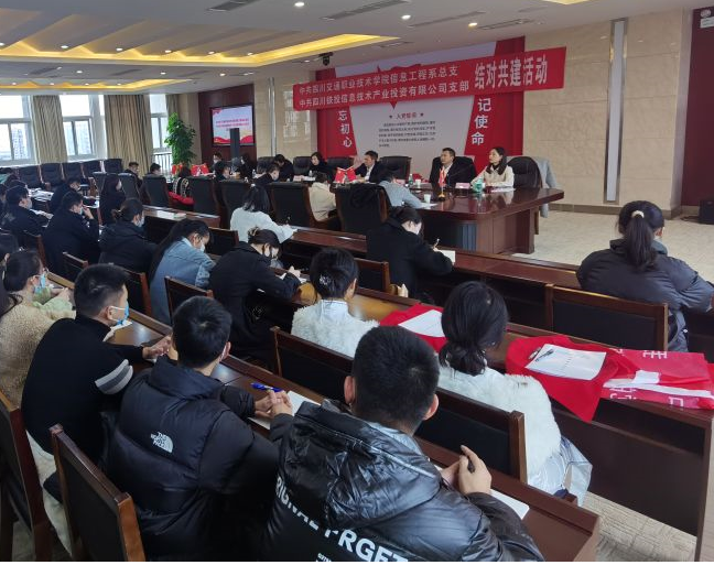11月29日,交职院信息工程系党总支与中共四川铁投信息技术产业投资有限公司支部委员会在学院明德楼1301开展支部共建共创结对交流。四川铁投信息技术产业投资有限公司支部书记、执行董事、总经理周正,支委委员、副总经理胡东风 ,支委委员、副总经理、工会主席朱颖,信息工程系党总支书记夏莉娜、党总支副书记常洁、副主任时云峰以及公司党员代表、教职工党员代表、学生入党积极分子共计63人参加了会议,会议由信息工程系党总支副书记常洁主持。