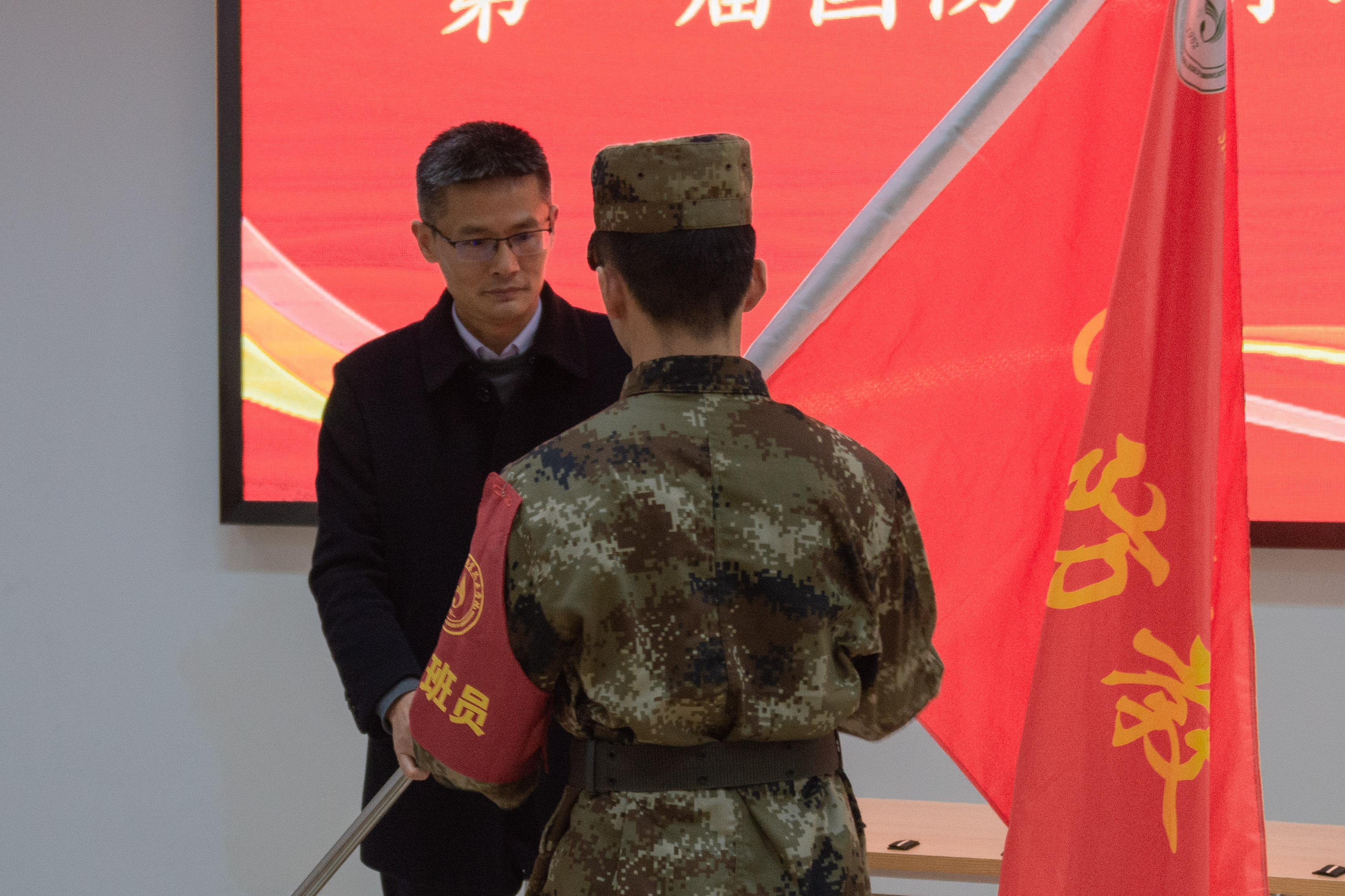 仪式上,李红为国防教育班授旗,为学员代表授衔,教官代表和学员代表分别发言和表决心,李红在仪式上要求国防教育班要,胸怀家国天下,不负历史选择,进入国防教育班的同学们,要珍惜这一次难得的锻炼提高的机会,认真学习国防理论以及党史军史,提升政治素养,强化国防意识,坚定理想信念,树立家国情怀,成为有理想、有境界、有情怀的时代新人;练就过硬本领,不负强军重任,要继承和发扬军人爱国奉献、吃苦耐劳的精神,以军人的标准严格要求自己,潜心学习、刻苦训练、精武强能,树牢国防理念,掌握军事技能,增强身体素质,努力成为强国强军的“先锋力量”;强化实践锻炼,不负时代重托,要加强自我管理和自我约束,在实践锻炼中形成良好的生活习惯和行为作风,磨砺出军人的意志,实现从学生青年到预备军人的转变,以良好的精神面貌带动学校校风、学风进一步提升;学院有关部门要以国防教育班为抓手,起好步、开好局,积极主动探索、创新管理方式,统筹处理好课堂教育和军事训练的关系,把国防教育班办出特色、办出成果、办出影响。国防教育班的教官们一定要严管厚爱,精心培育,努力把“国防教育班”办成学院的标杆班,充分发挥“国防教育班”在学院的示范和引领作用,为实现强军目标、建设世界一流军队贡献更多智慧和力量。