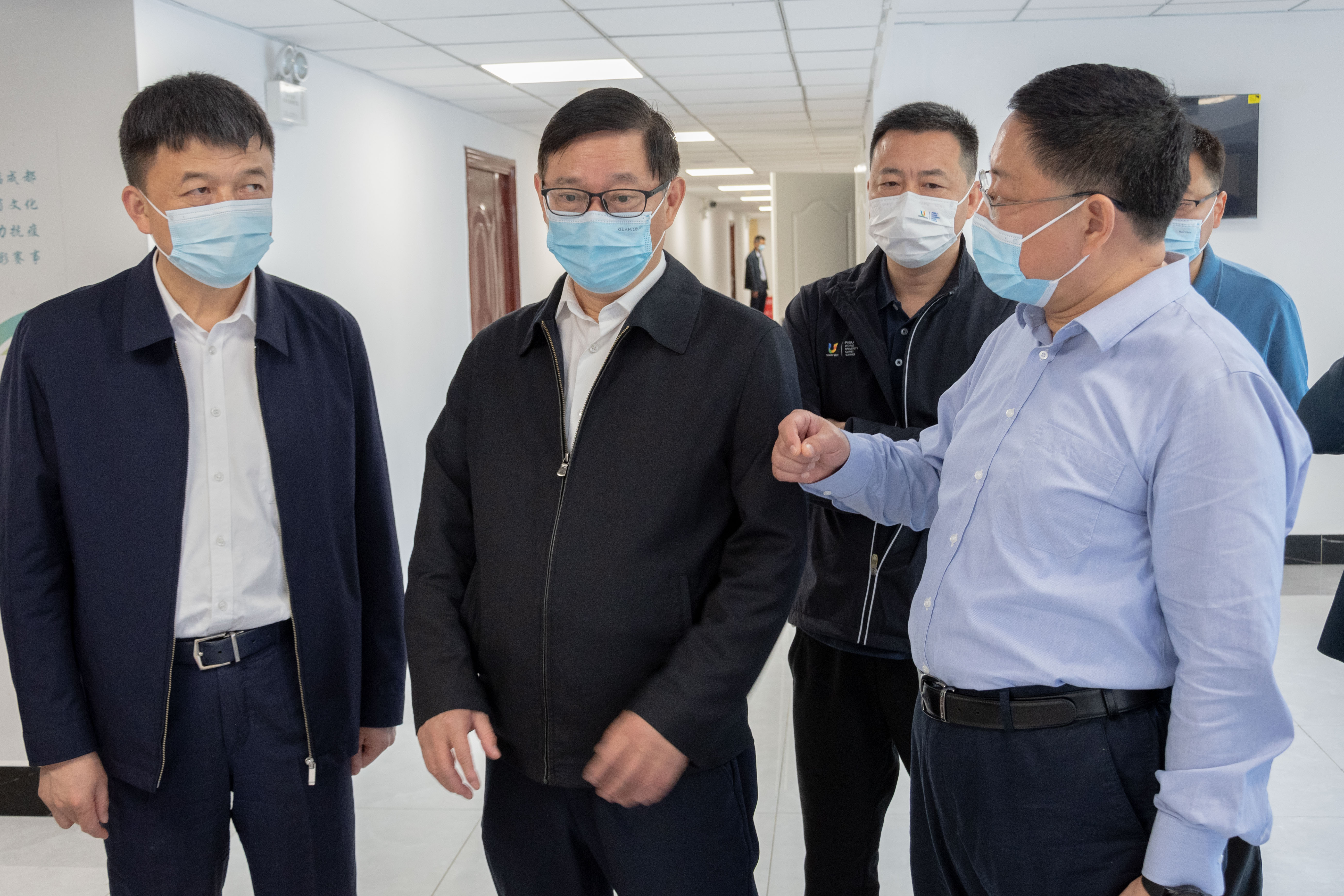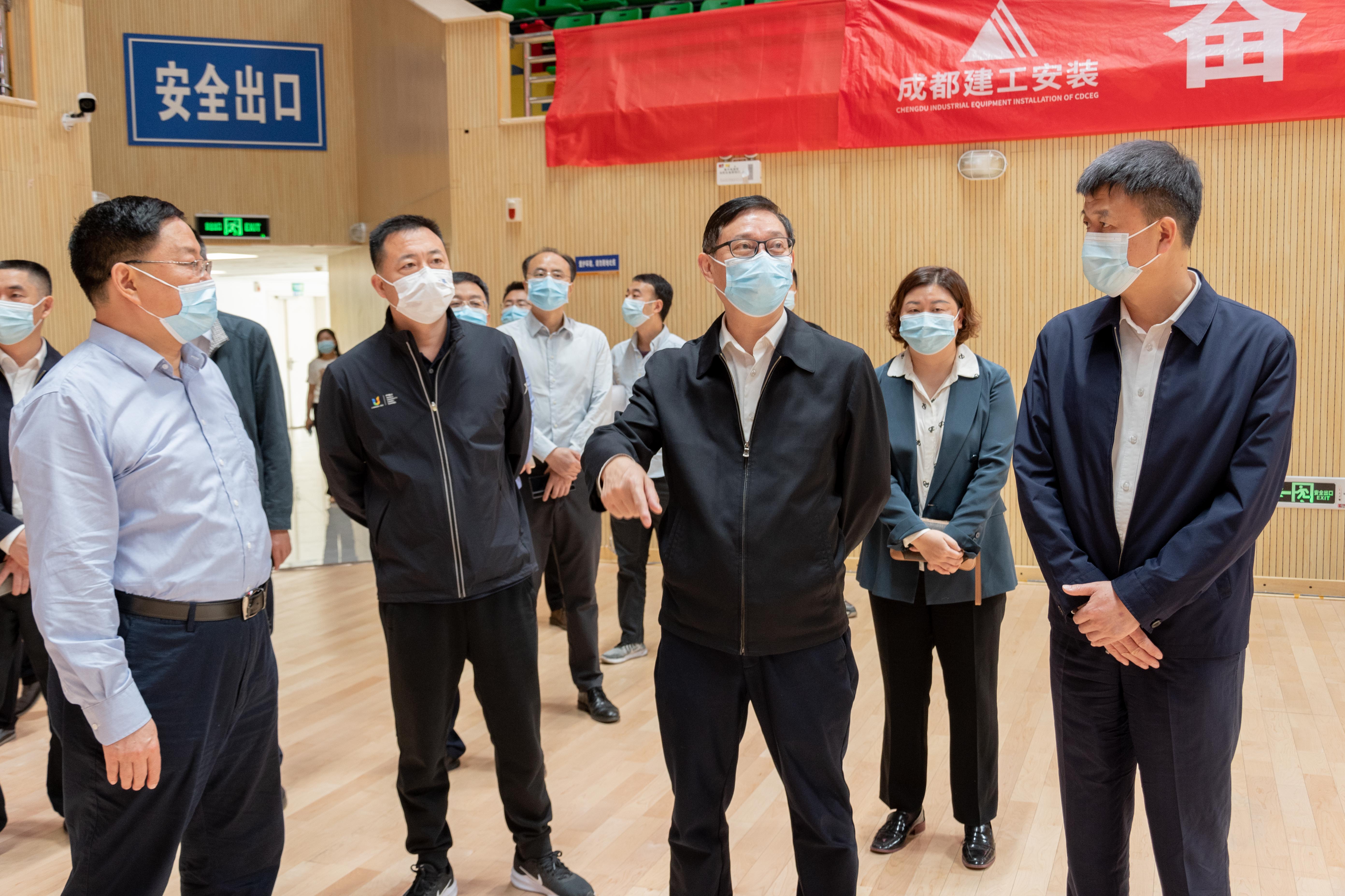 4月12日,教育厅副厅长陈朝先一行赴温江赛区四川交职院排球场馆中心调研。