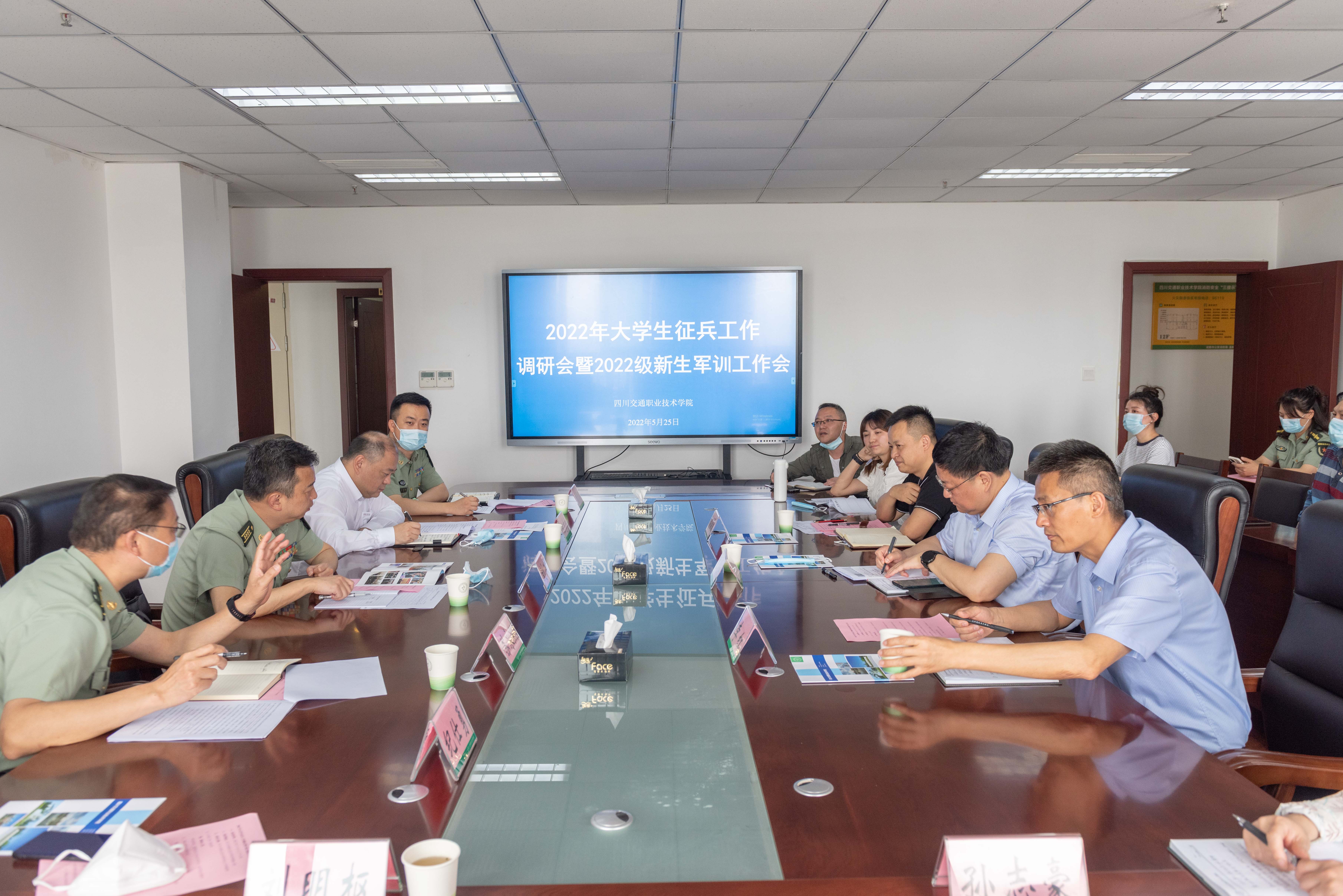 5月25日上午,成都警备区副司令员刘波,温江区征兵工作领导小组副组长、区人民政府副区长、区公安分局局长陈志宏,温江区武装部部长刘圳刚一行来学院调研征兵及军训工作。学院党委书记王东平,党委委员、副院长李红,学生工作部负责人,各系党总支副书记、毕业班辅导员参加座谈会。会议由学生工作部负责人张春明主持。