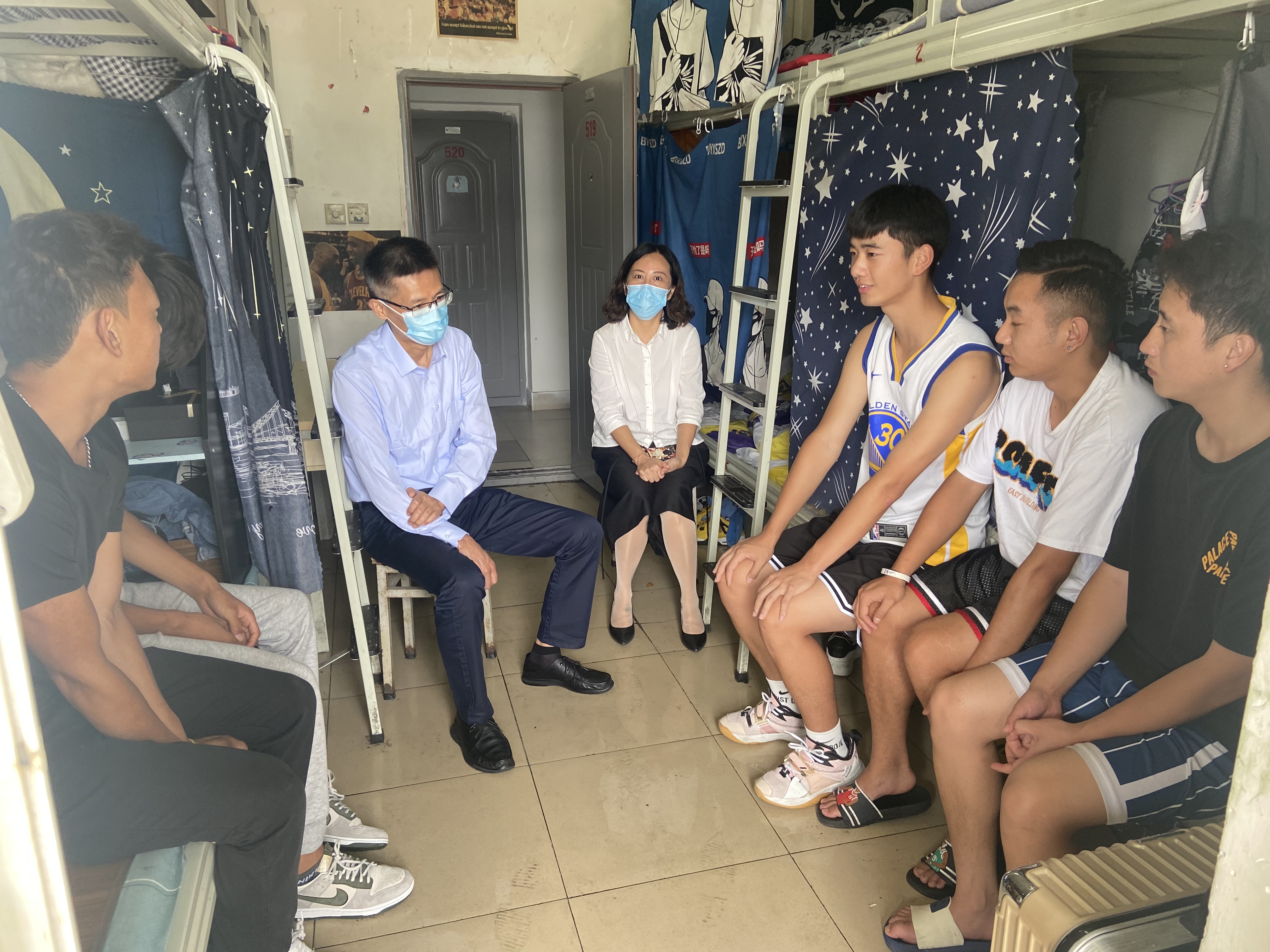 此行先后走访了多个寝室,与同学们进行了亲切交流,将成都市疫情防控指挥部最新通告转达到每一位同学们,悉心询问了返校学生目前思想动态、线上教学、生活以及近期规划等情况,希望同学们要理解遵循疫情防控的属地原则,严格遵守学院纪律要求,按时网课,适量运动、保证休息,合理制定学习目标。在道桥系新疆籍、9+3民族学生寝室,李红副院长关切的询问同学们的家乡以及当地的就业政策,并耐心回答大三年级同学们即将面临的就业或升学的问题,鼓励同学们珍惜在校时光,熟练掌握技能,为更好就业和回报社会奠定坚实的学业基础。