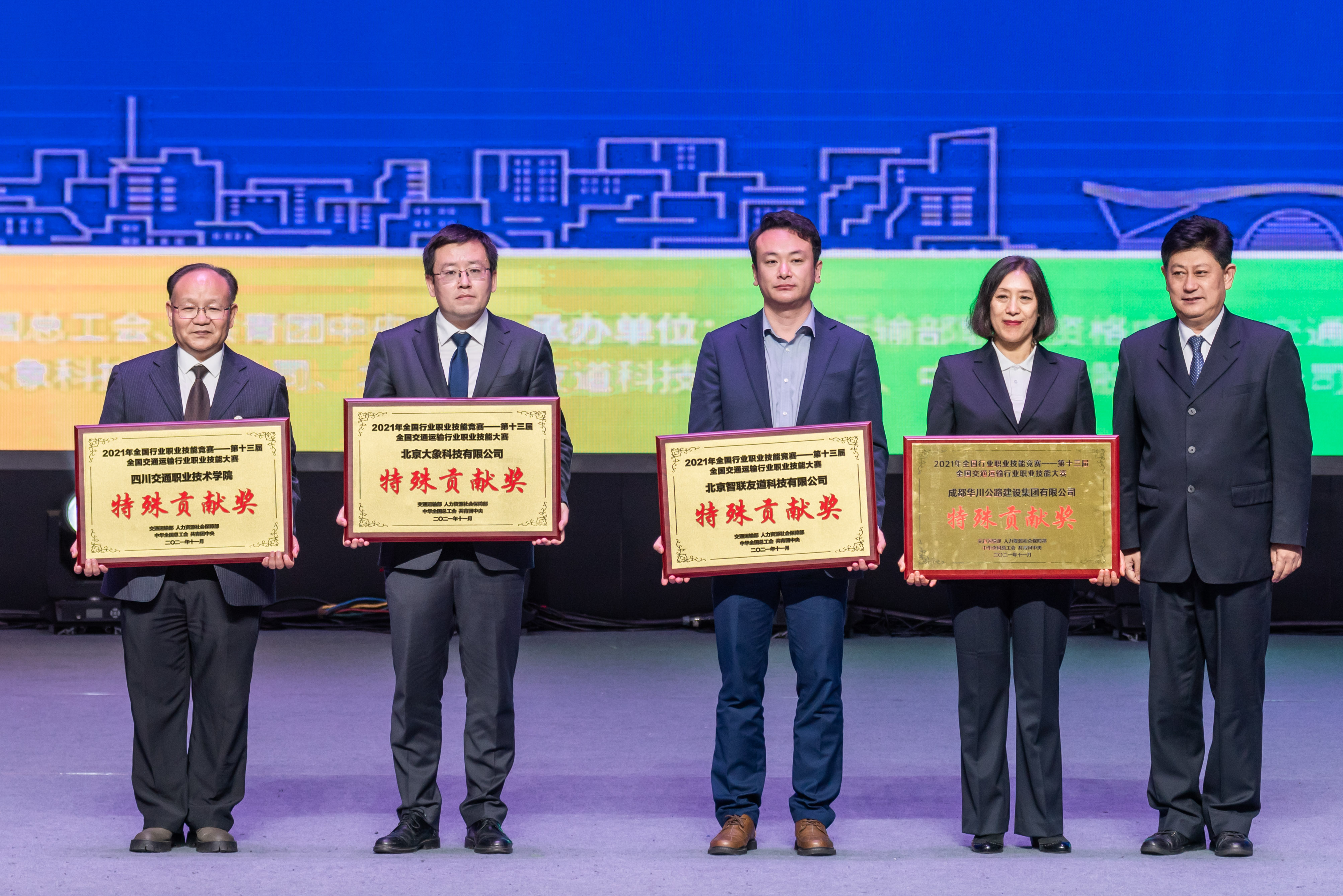 大赛在四川成都举办的4个赛项,由交通运输部职业资格中心、交通运输部科学研究院、中国交通报社公司、四川省交通运输厅承办,四川交通职业技术学院协办,北京大象科技公司、友道科技有限公司、中国铁建股份公司、成都华川公路建设集团公司、成都轨道交通集团公司支持。