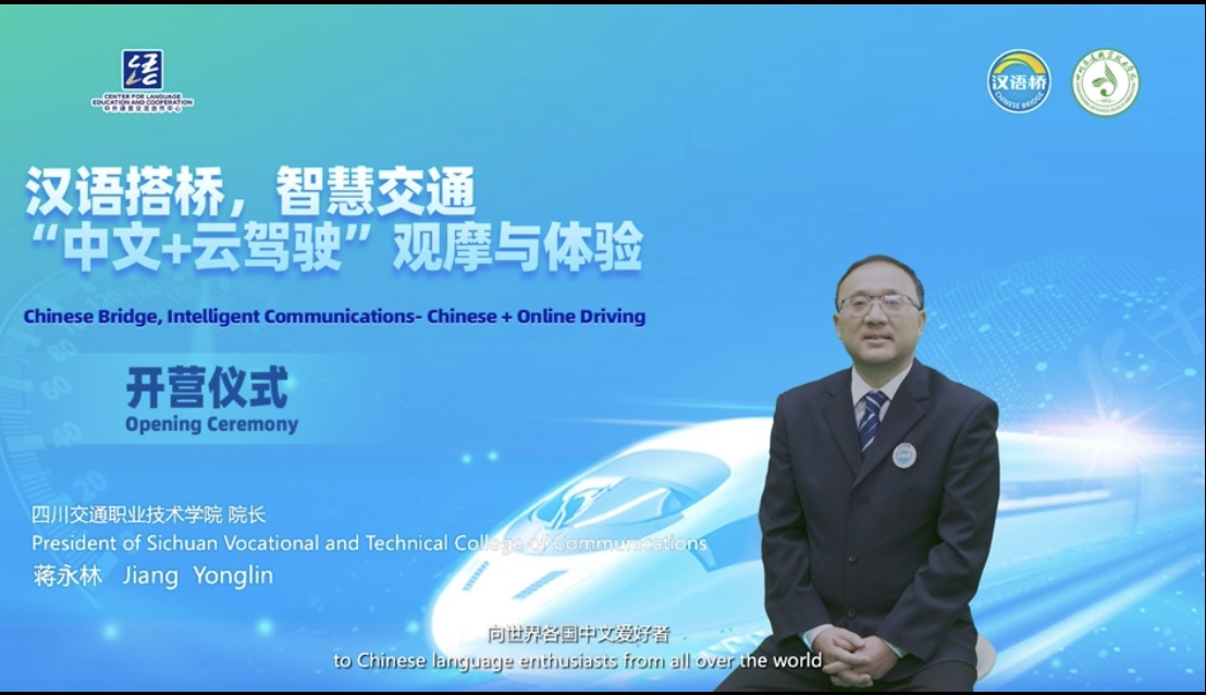 近日,由教育部中外语言合作交流中心主办,交职院承办的2022年“汉语桥”线上交流团组项目《汉语搭桥,智慧交通》线上冬令营正式开营。学院党委副书记、院长蒋永林在开营仪式上致辞。