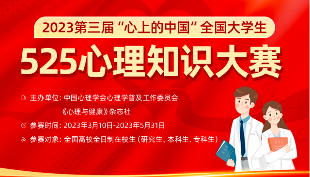为激发全国大学生积极学习心理科学知识热情,培养具备心理科学素养的新时代大学生,助力国家社会心理服务体系建设。我系积极发动130余名学生干部关注并参与由中国心理学会心理学普及工作委员会与《心理与健康》杂志社共同举办的“2023第三届‘心上的中国’全国大学生525心理知识大赛活动”,并在本次大赛中取得了历史性的成绩,共获一等奖二十名、二等奖二十三名、三等奖七名、优秀组织奖、优秀指导老师奖。