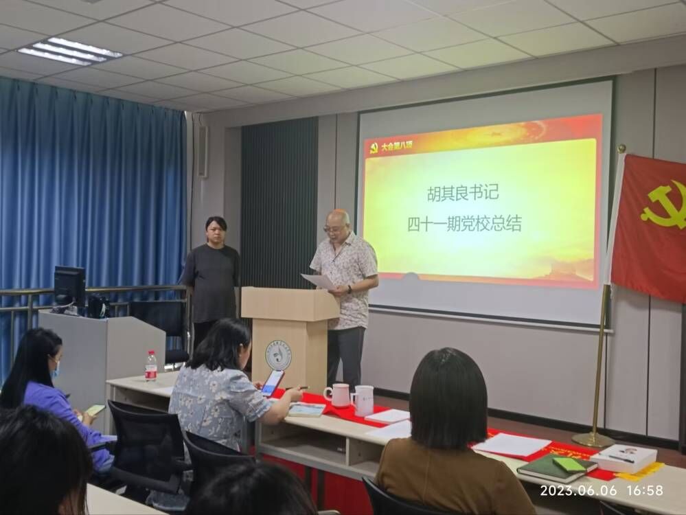 胡其良书记在结业典礼上发表讲话,并对全体学员顺利毕业表示祝贺与鼓励,他强调各位学员要继续保持党校学习热情,在思想上高标准、严要求,行动上脚踏实地一步一个脚印,以自己的实际行动,接受党组织的严格考验,争取早日入党,为第二个一百年添砖加瓦。